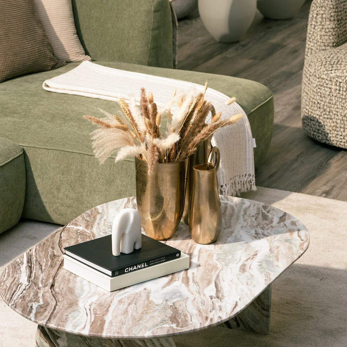 Round Curved Vase Small in Antique Bright Gold brings a golden radiance to your décor. Compact yet eye-catching, it’s perfect for adding warmth to shelves or side tables.
