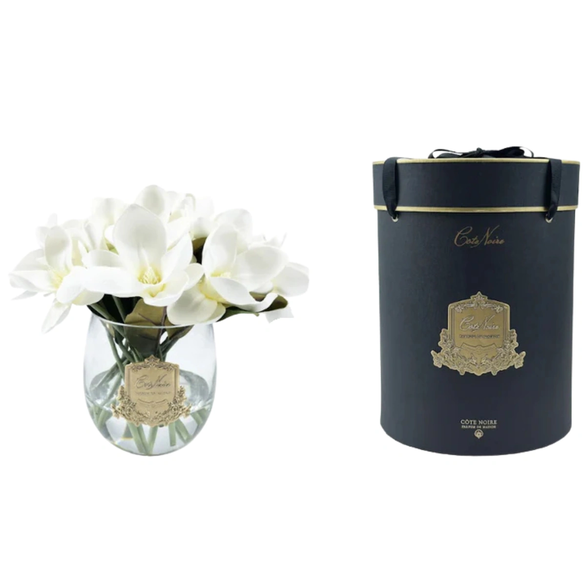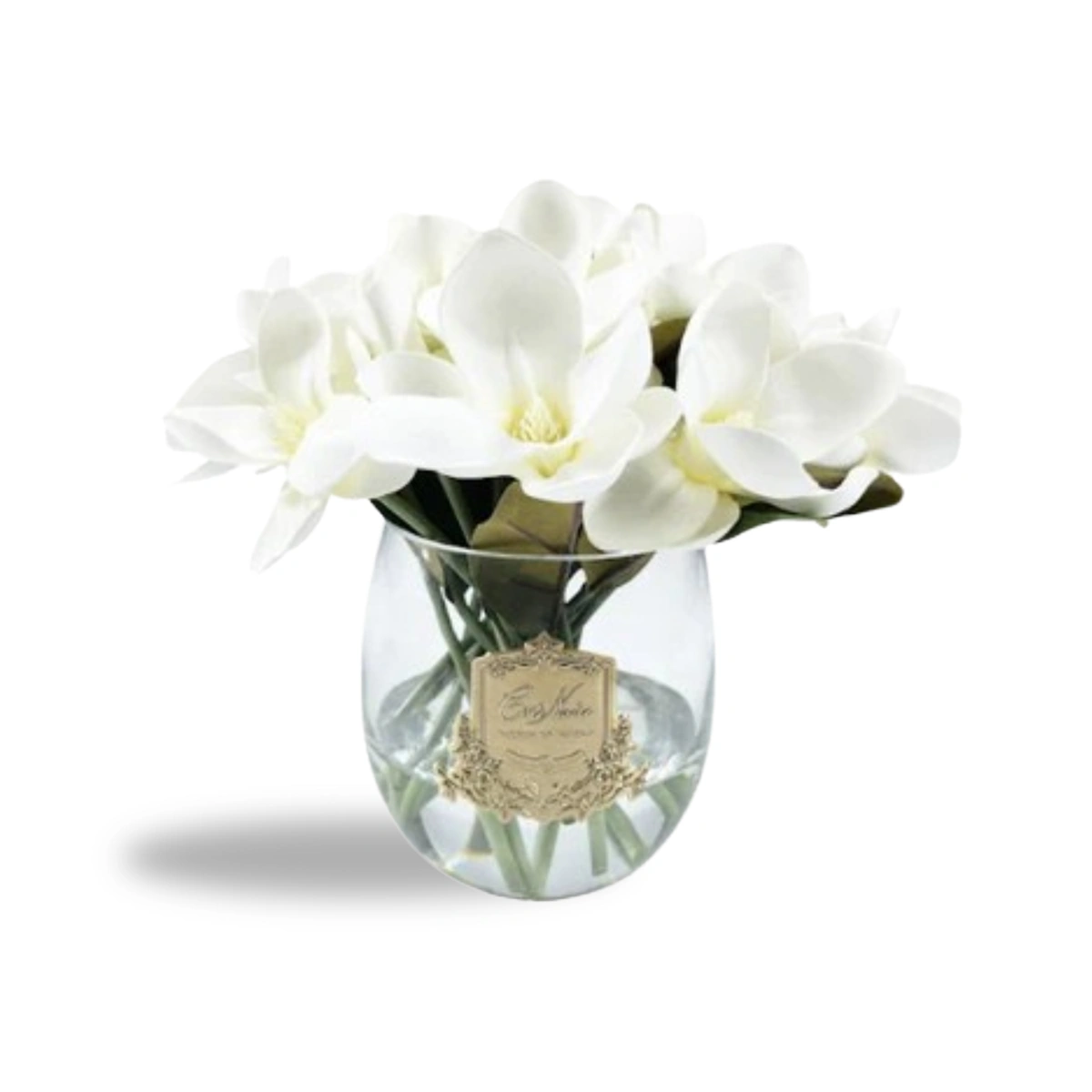 Lifelike scented magnolia in gel-filled vase. Handcrafted petals with realistic touch. Elegant, long-lasting floral decor. Made in Portugal