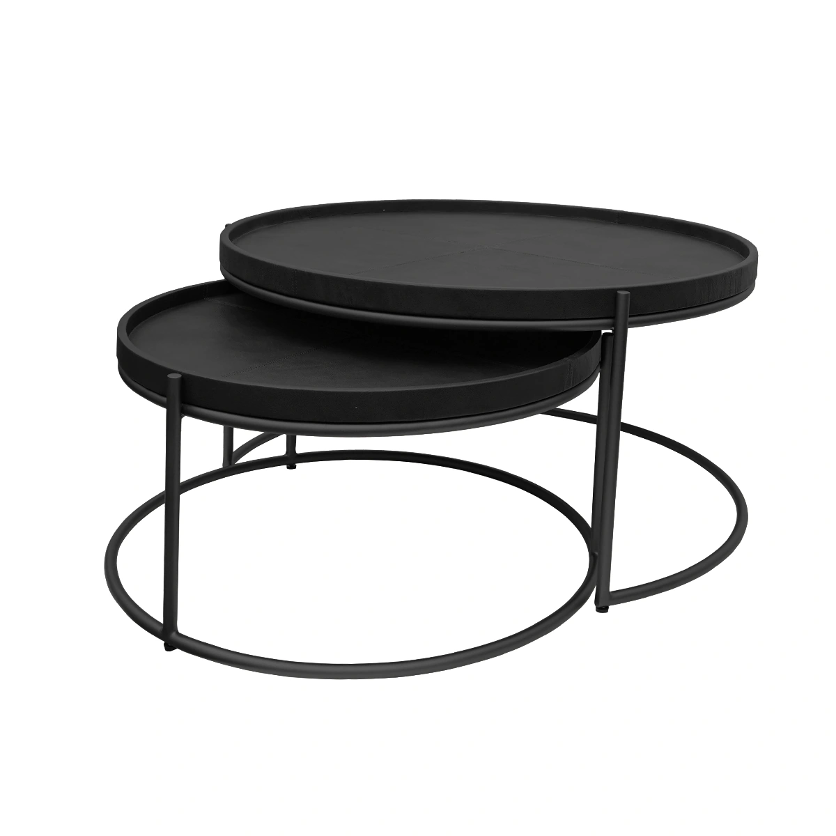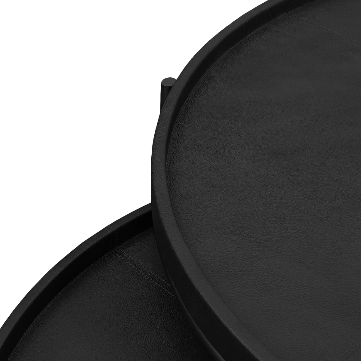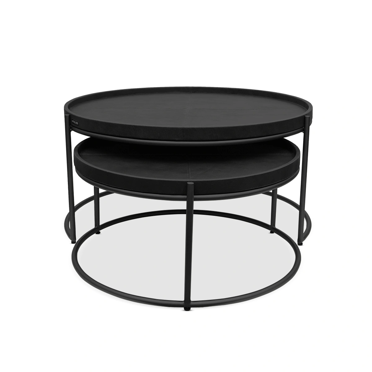 Black Leather Round Nesting Tables – Set of Two, Iron Frame