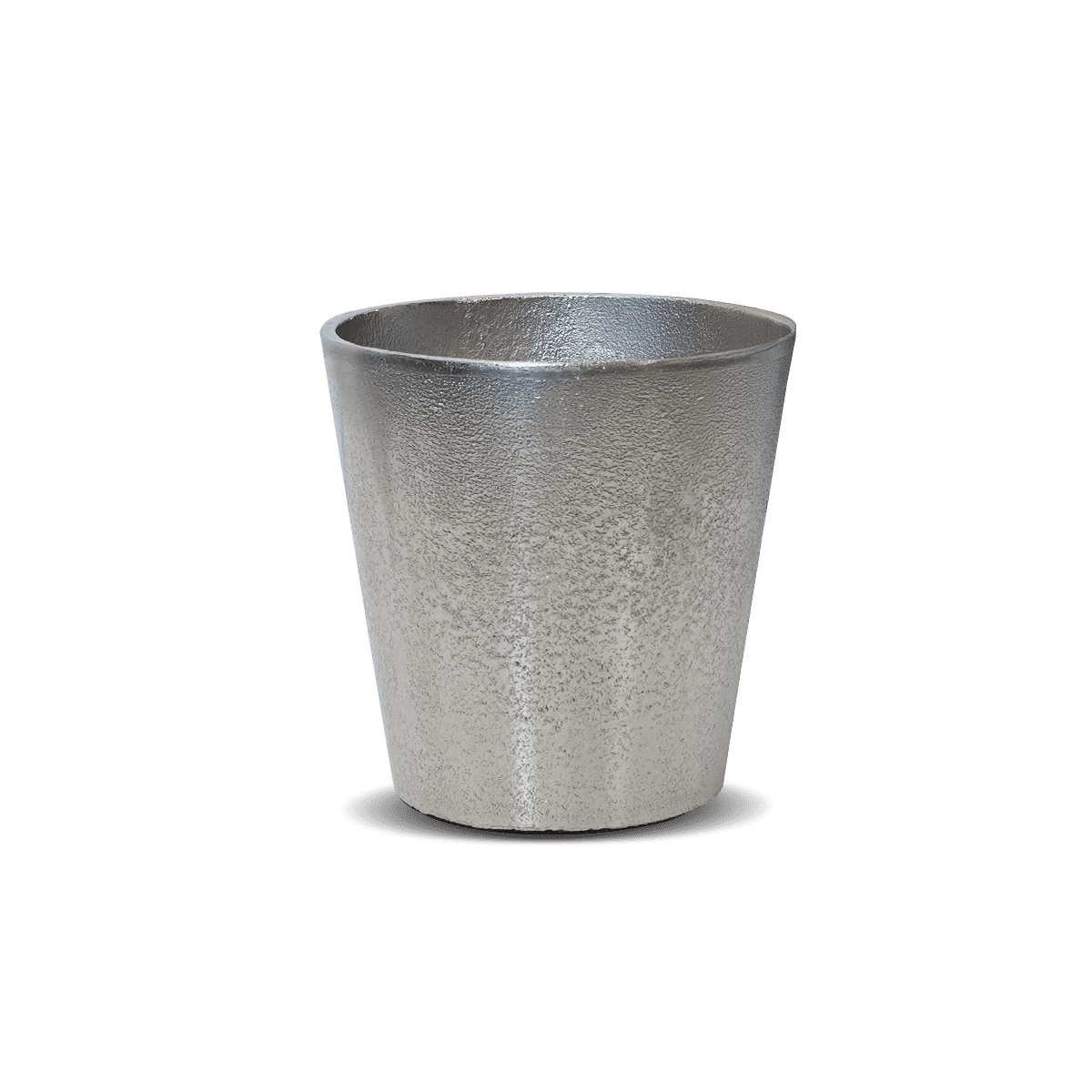 Round Taper Pot Small in Raw Silver adds a touch of minimalist charm to your home décor. Its smooth form is ideal for displaying small plants or decorative pieces.
