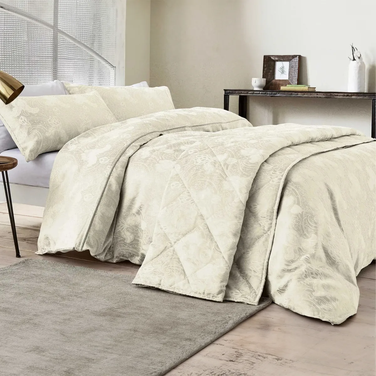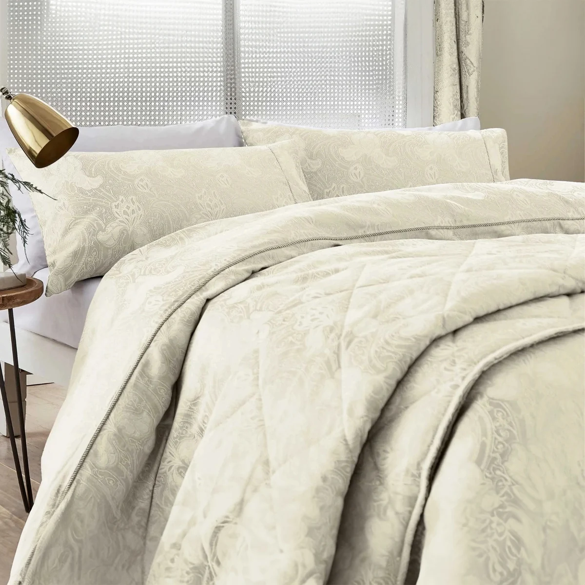 Inspired by the Arts & Crafts movement, this elegant design showcases flowing leaves and iris fIowers in a refined color palette. Finished with a rope trim and reversible plain dye backing, it’s perfect for layering with the matching quilted throw for a cozy, sophisticated look.