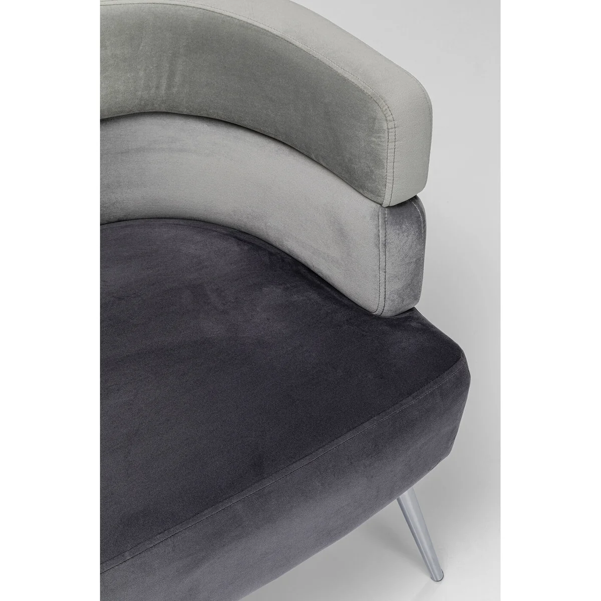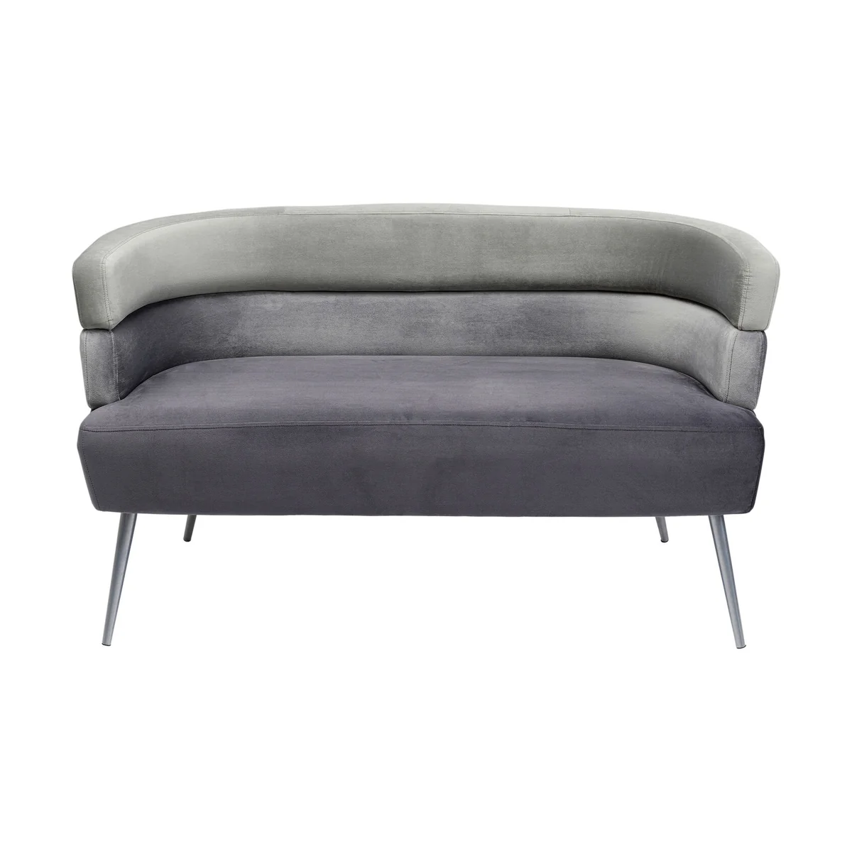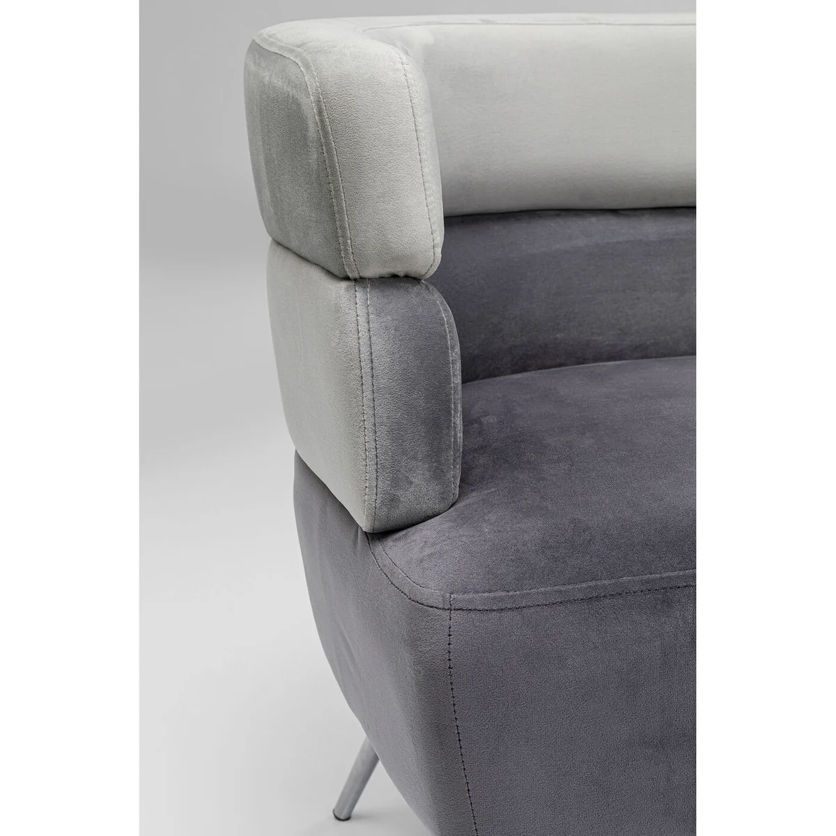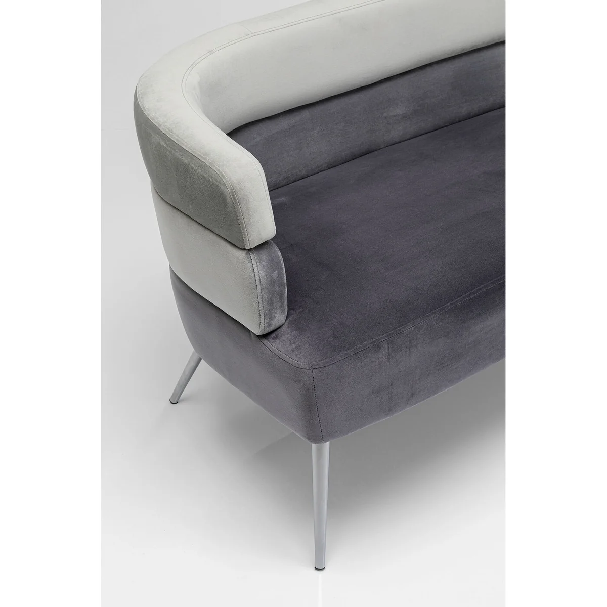 - Fully upholstered, compact sofa in a grey velvet look with silver-coloured, slightly flared legs - Cosy living: the round, continuous arm and backrest makes Sandwich superbly comfortable - The three graduated shades of grey in the upholstery and the two-part backrest give this salon couch its special design appeal - At last a velvet sofa with delicate dimensions which will also fit into a small apartment, living room or bedroom - Joins in with all your furnishing ideas, because it also fits into the reading corner and can easily be placed anywhere in the room thanks to its attractive appearance