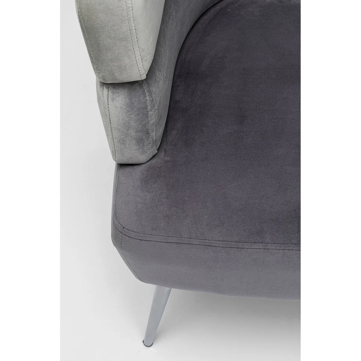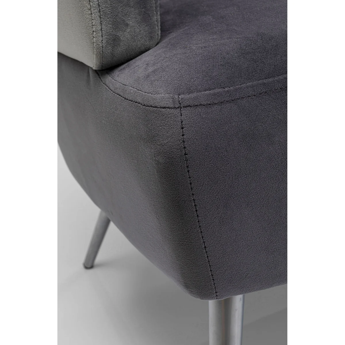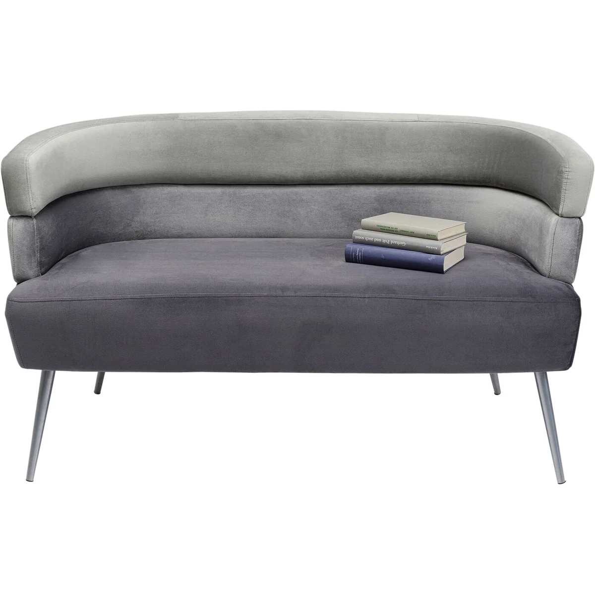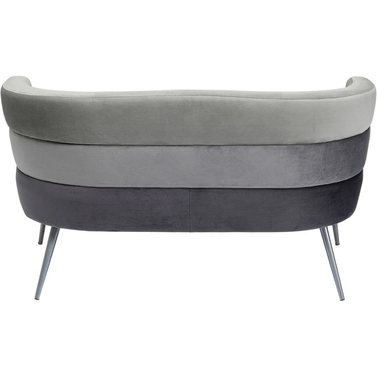 - Fully upholstered, compact sofa in a grey velvet look with silver-coloured, slightly flared legs - Cosy living: the round, continuous arm and backrest makes Sandwich superbly comfortable - The three graduated shades of grey in the upholstery and the two-part backrest give this salon couch its special design appeal - At last a velvet sofa with delicate dimensions which will also fit into a small apartment, living room or bedroom - Joins in with all your furnishing ideas, because it also fits into the reading corner and can easily be placed anywhere in the room thanks to its attractive appearance
