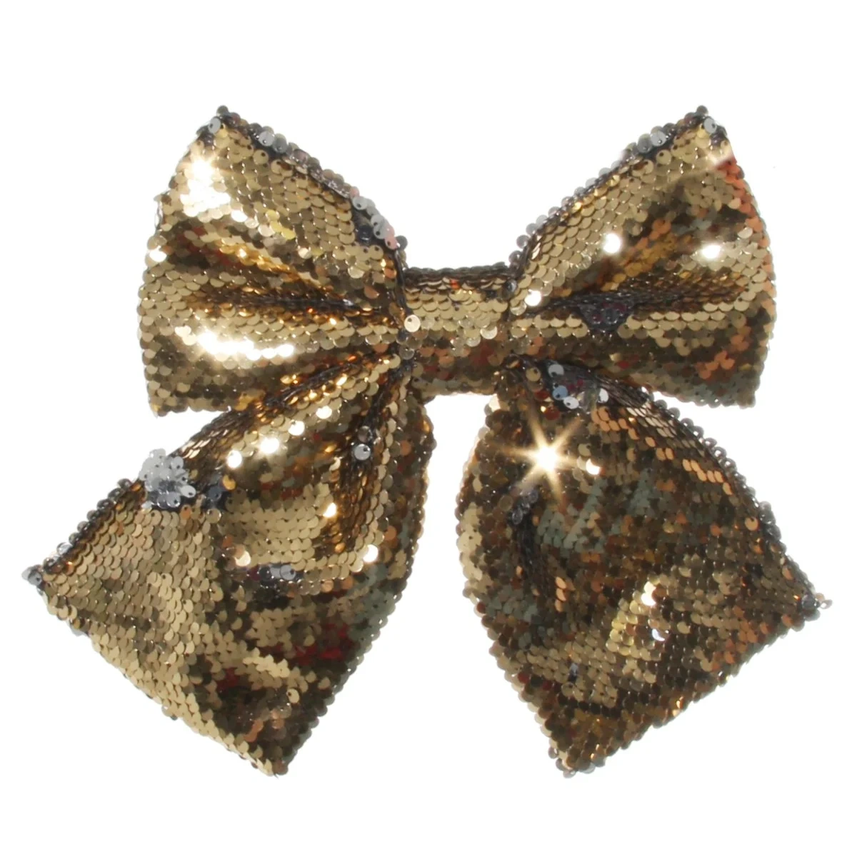 Sequin Bow with Clip Décor Accent (Small) - Gold
