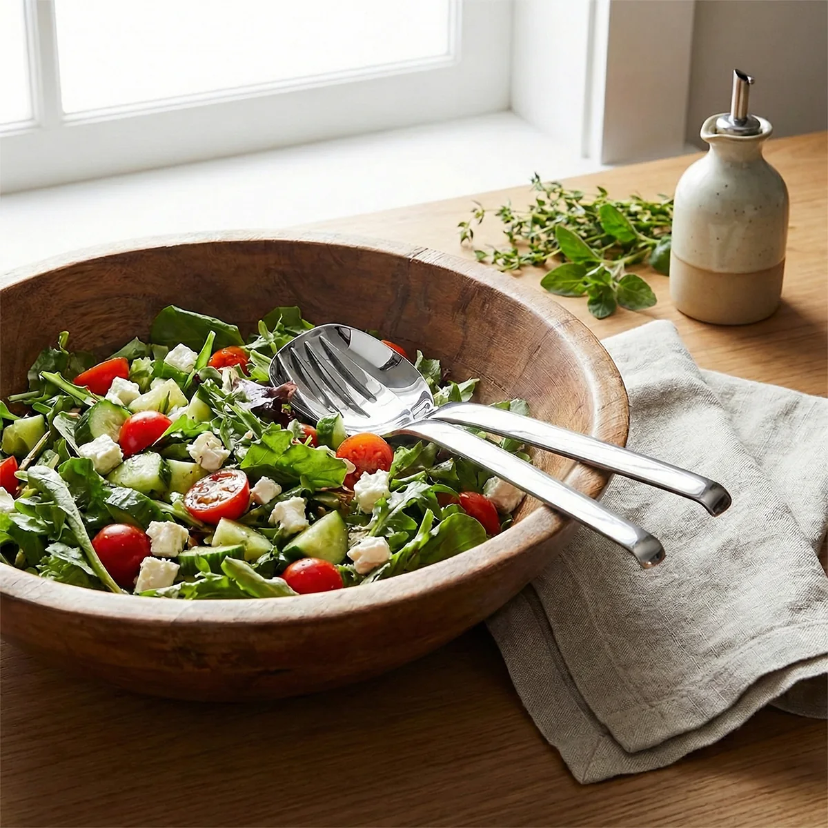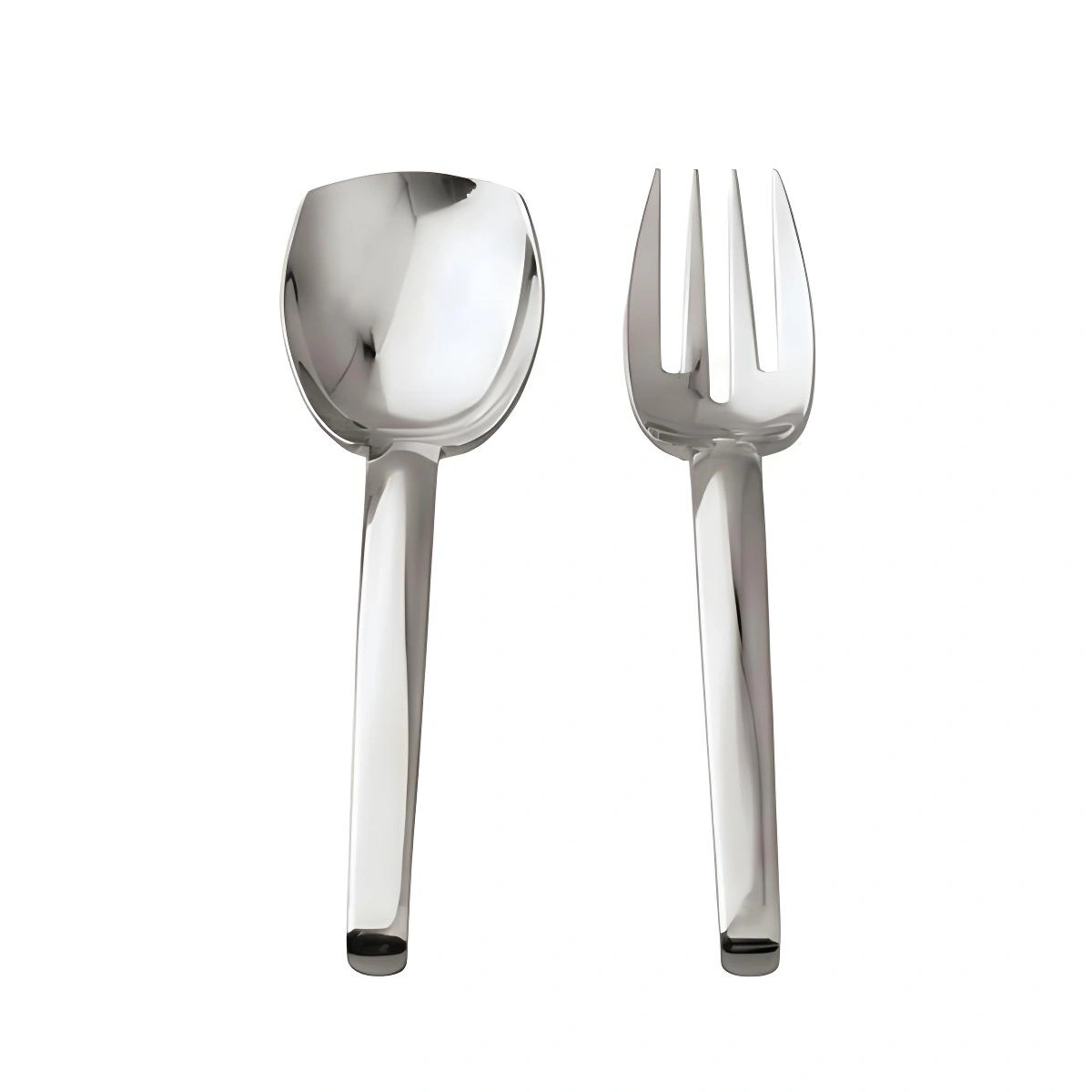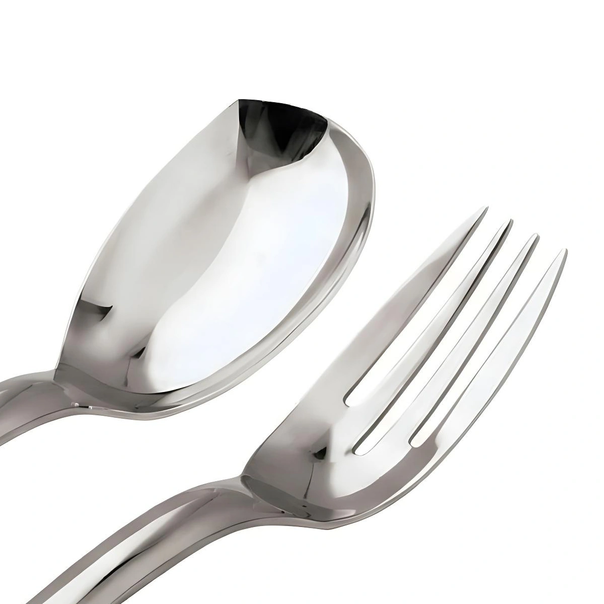 The Serving Fork & Spoon Set in silver is crafted for coordinated serving with timeless appeal. Designed for shared dishes and family-style meals, this stainless steel set adds polish and practicality to any table setting. Made from durable stainless steel, each piece features a smooth silver finish and balanced weight for comfortable handling. The classic design pairs easily with both modern and traditional tableware. This serving set offers dependable performance and refined style. Ideal for everyday meals and hosting, it makes serving effortless and elegant.