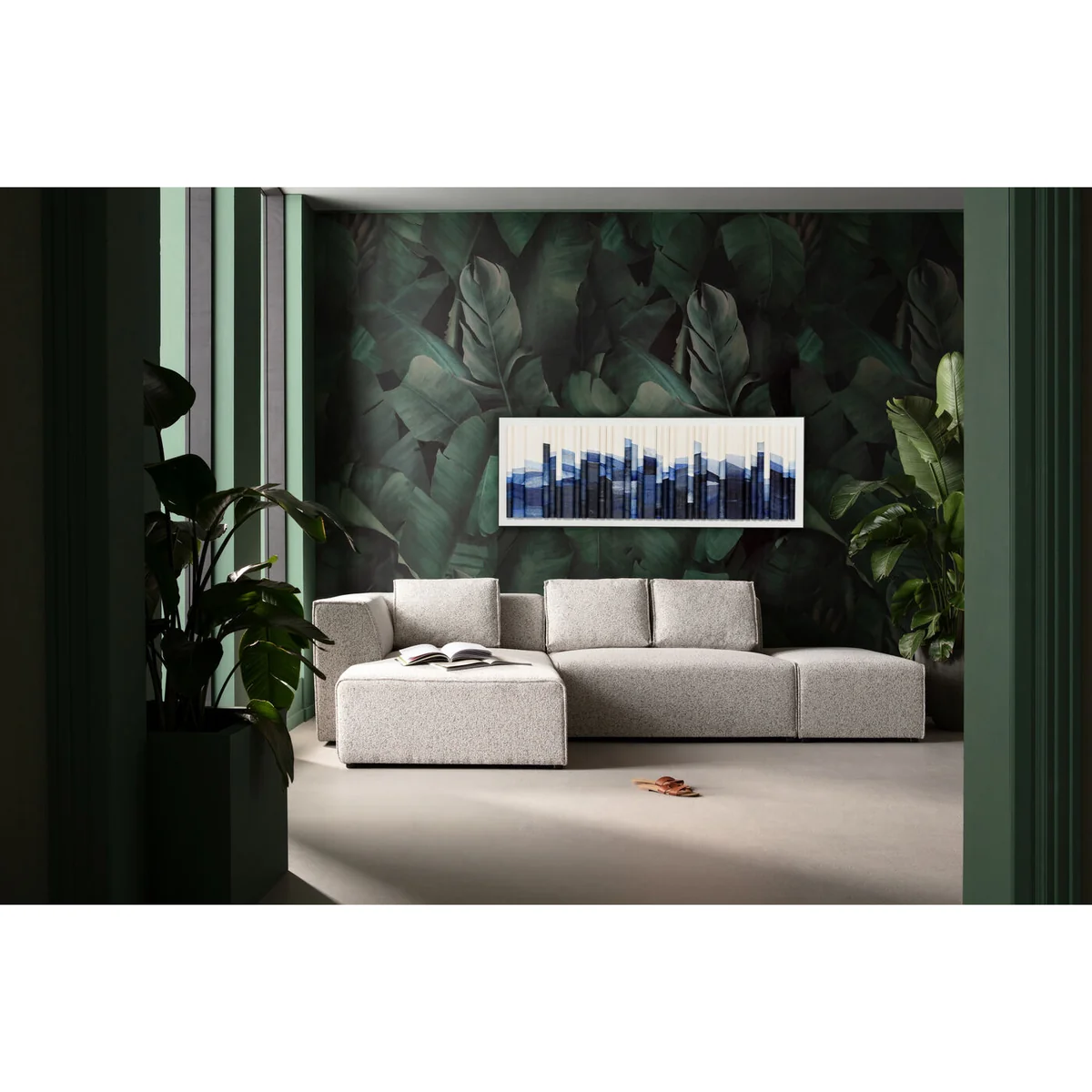 Elevate your home with the Shadow Skyline Wall Decoration in Blue Paper Art. This large, eye-catching piece is perfect for adding depth and intrigue to any large wall space, such as above a sofa or a dining room sideboard.