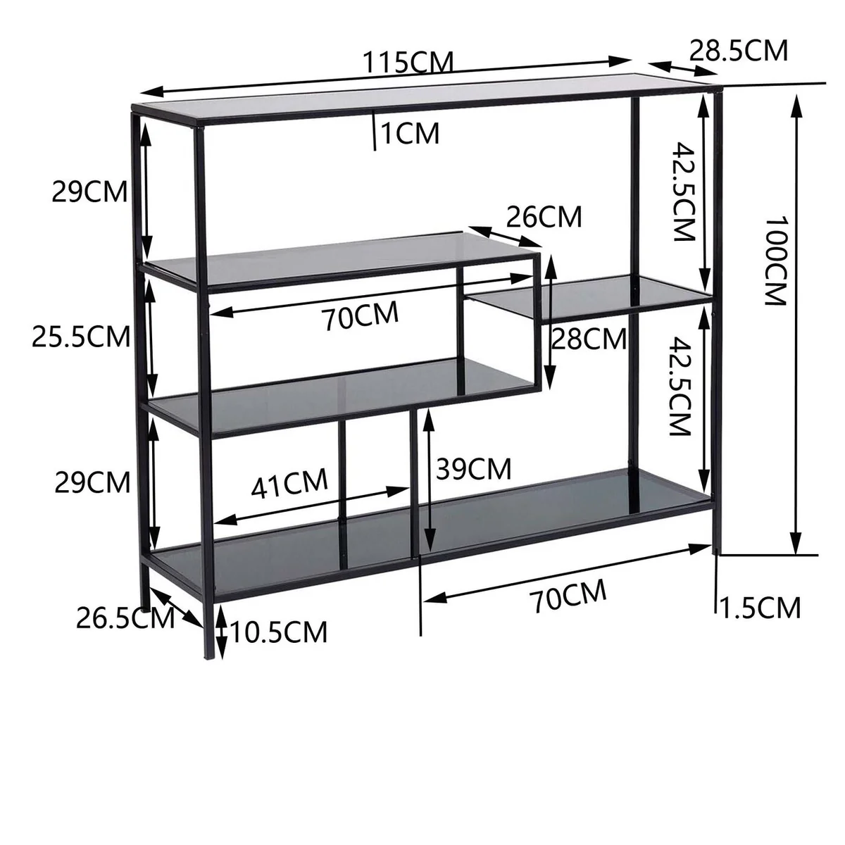 Key features of the Loft Shelf include a spacious length of 115cm, a practical depth of 30cm, and a height of 100cm. The stunning black color and the 5mm toughened safety glass construction ensure a reliable and stylish storage solution.