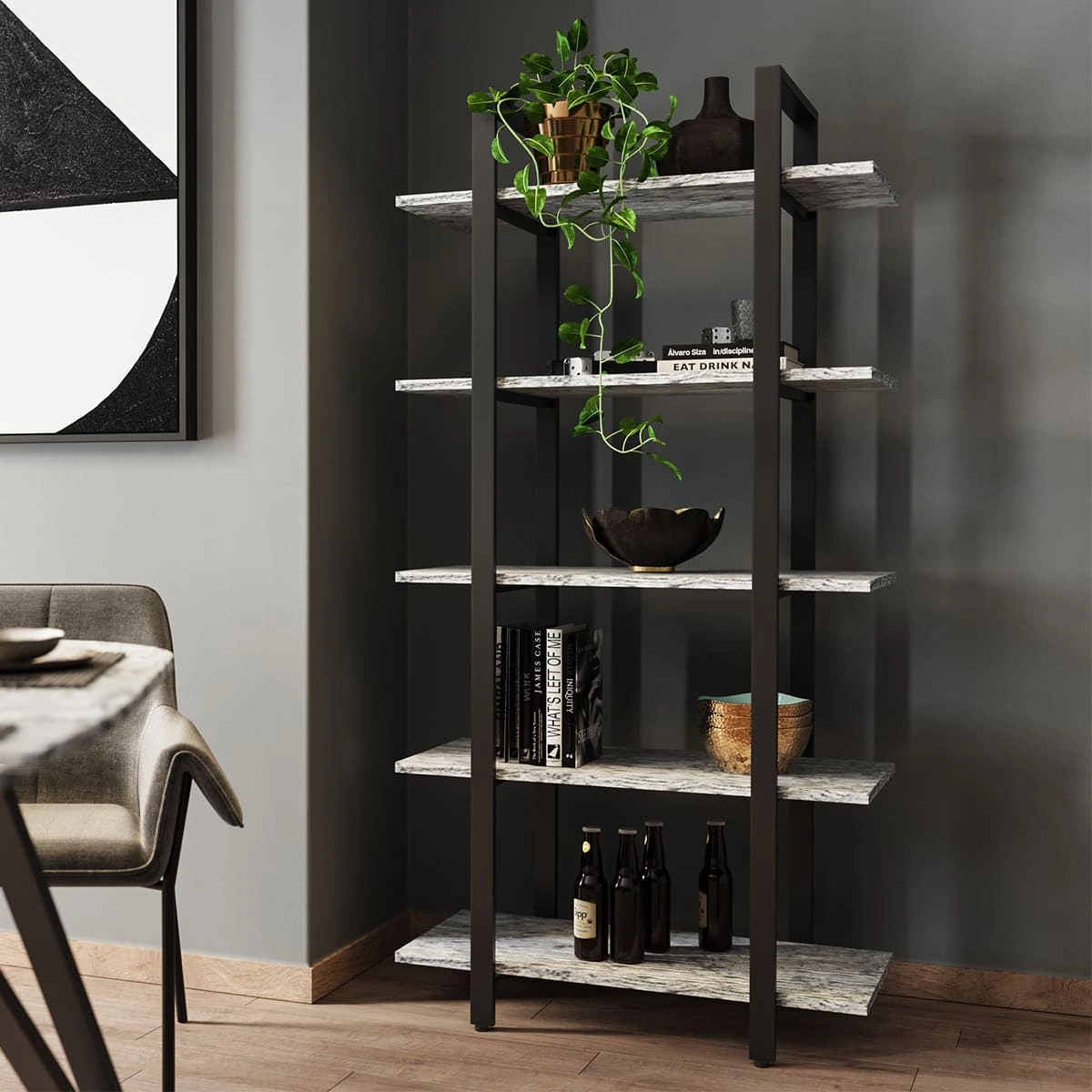 The Grey Steel Powder-Coated Okinawa Shelf in 180x120 cm size is a modern solution to your storage needs.