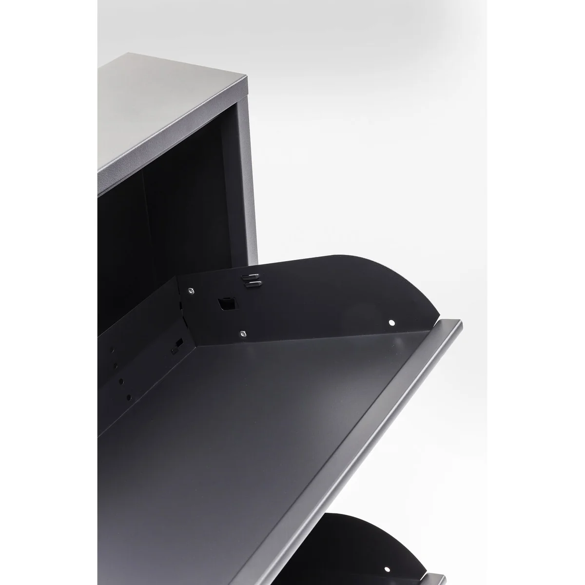 Meet the Caruso Shoe Container in anthracite black steel, a perfect blend of style and functionality for your home.