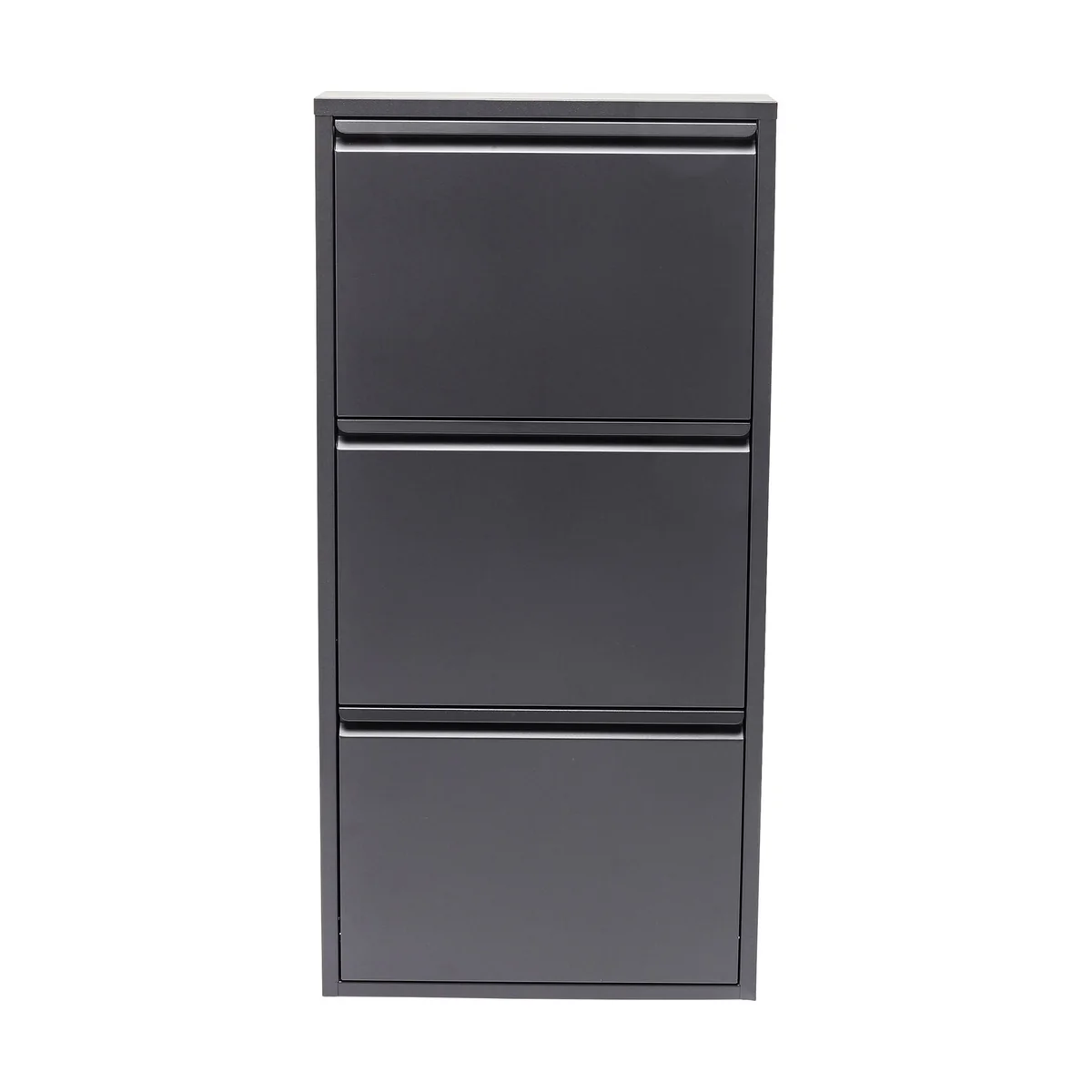 | Material: | A shoe cabinet with style. A stylish shoe cabinet made of powder-coated sheet steel and attractive anthracite-coloured lacquering. Three spacious tilt compartments provide a lot of protection and storage space for your shoes. The cabinet matches a varie |