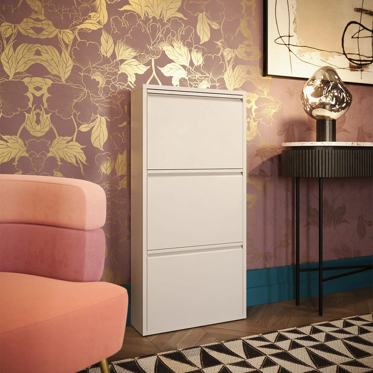 Caruso White Steel Powder-Coated 3 Shoe Container