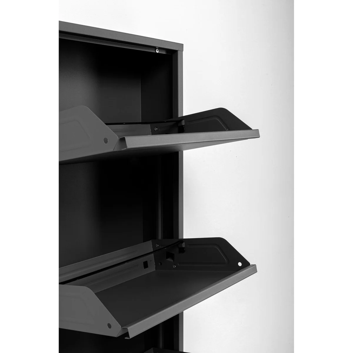 Introducing the Caruso Shoe Container in black powder-coated steel, a practical and stylish solution to your shoe organization needs.
