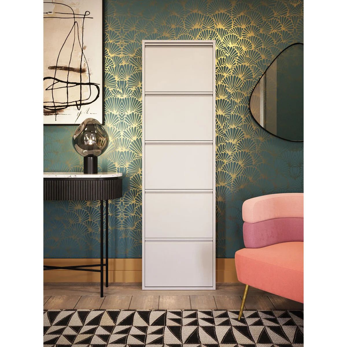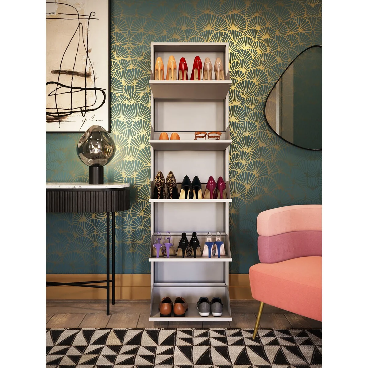 Meet the Caruso Shoe Container in cream powder-coated steel, a perfect solution for your footwear organization needs.