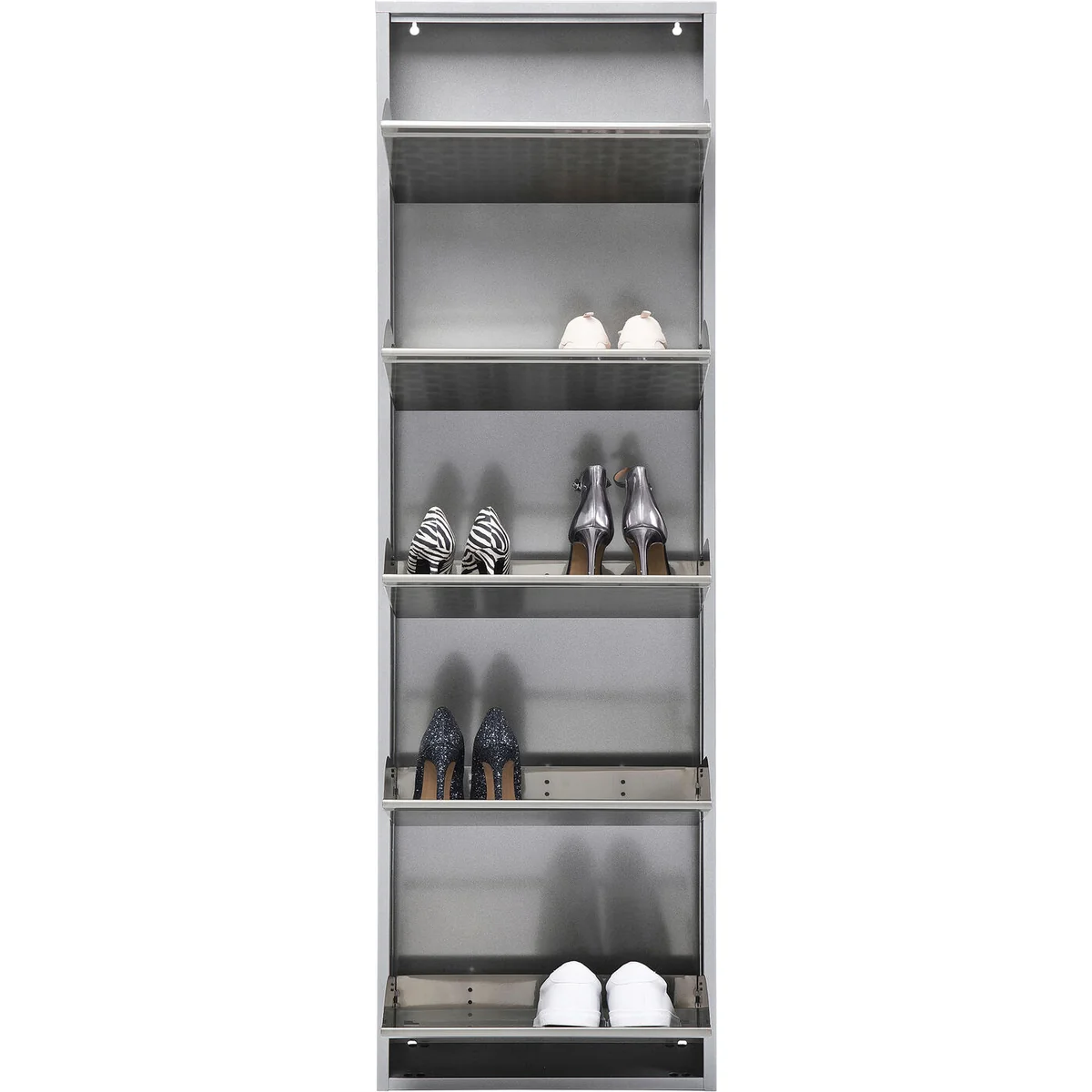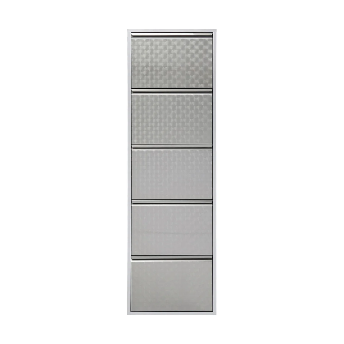 Introducing the Caruso 5 Shoe Container in a stylish silver brushed steel finish. With its sleek design and superior functionality, it's the perfect addition to any modern home.