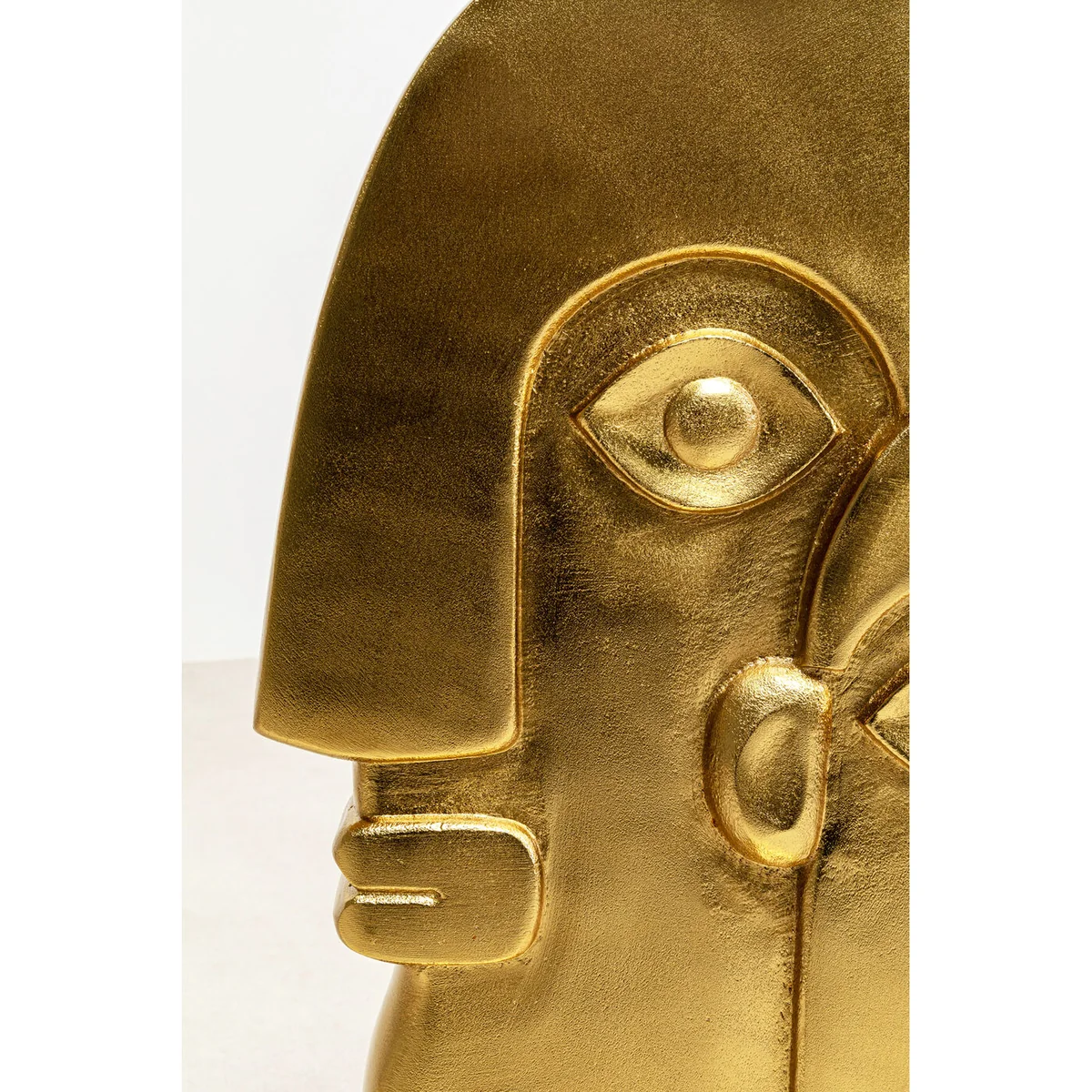 â— Golden side table with a round glass top â— Exceptional sculptural Faces design â— A striking, decorative eye-catcher combined with a practical surface to put stuff on â— Detailed and high quality made of metal and clear glass â— An artistic object with a decidedly exclusive character