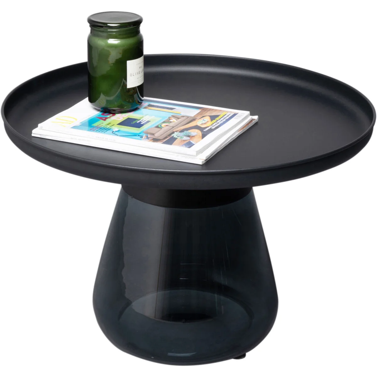 Key features include its generous Ø60CM size, and a sleek, stylish frame made from colored glass. The table's black hue adds a touch of sophistication and pairs well with a wide range of decor styles. At L 60 cm | D 60 cm | H 43 cm, this table is the perfect size for displaying photo frames, houseplants, or your favorite reading materials.