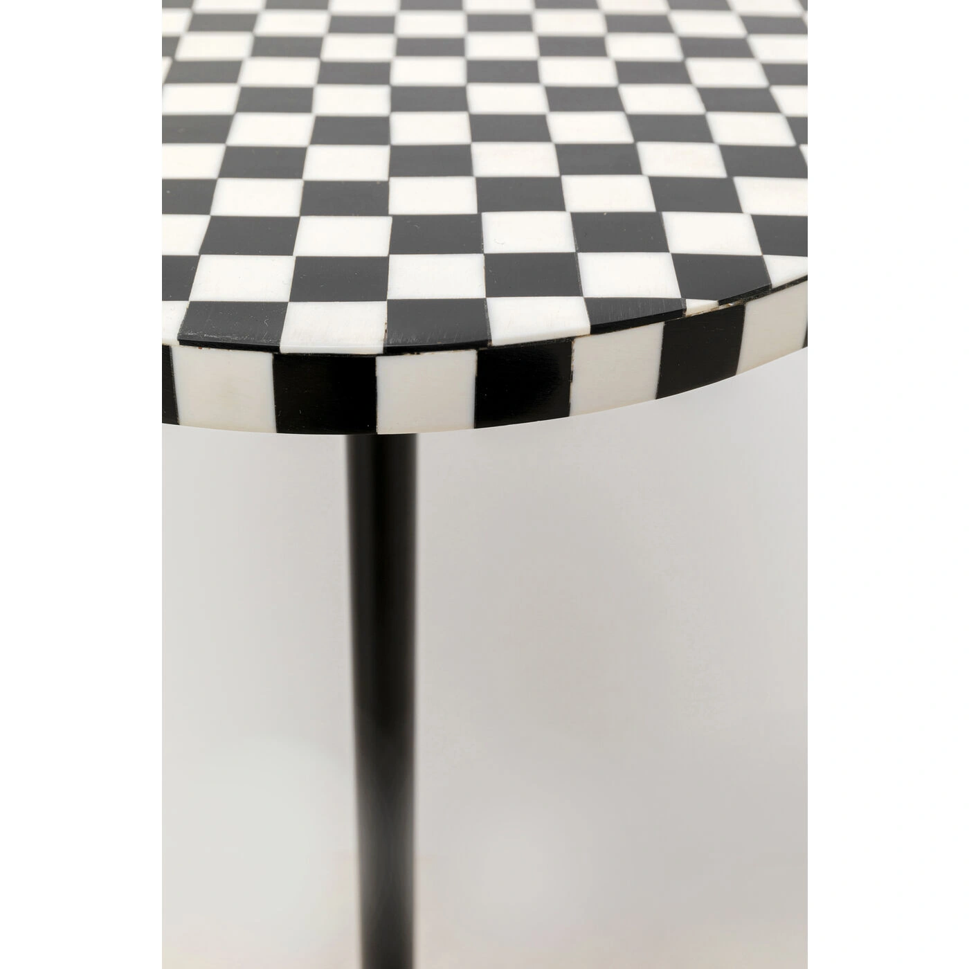 • The handcrafted chequerboard pattern on the base and top makes each little table a unique piece