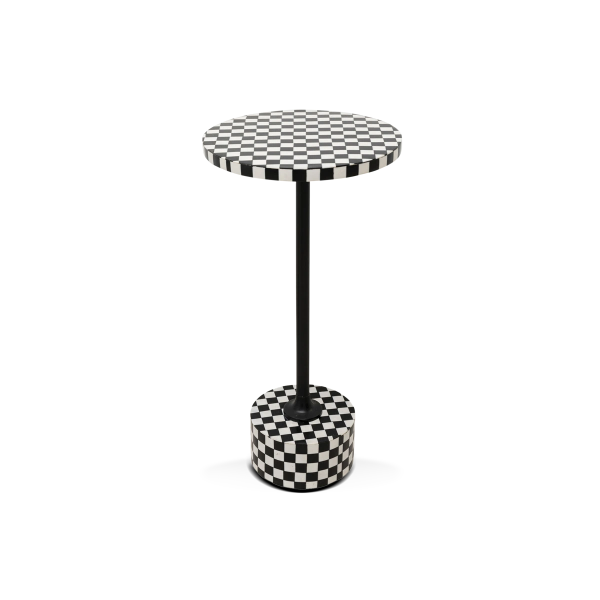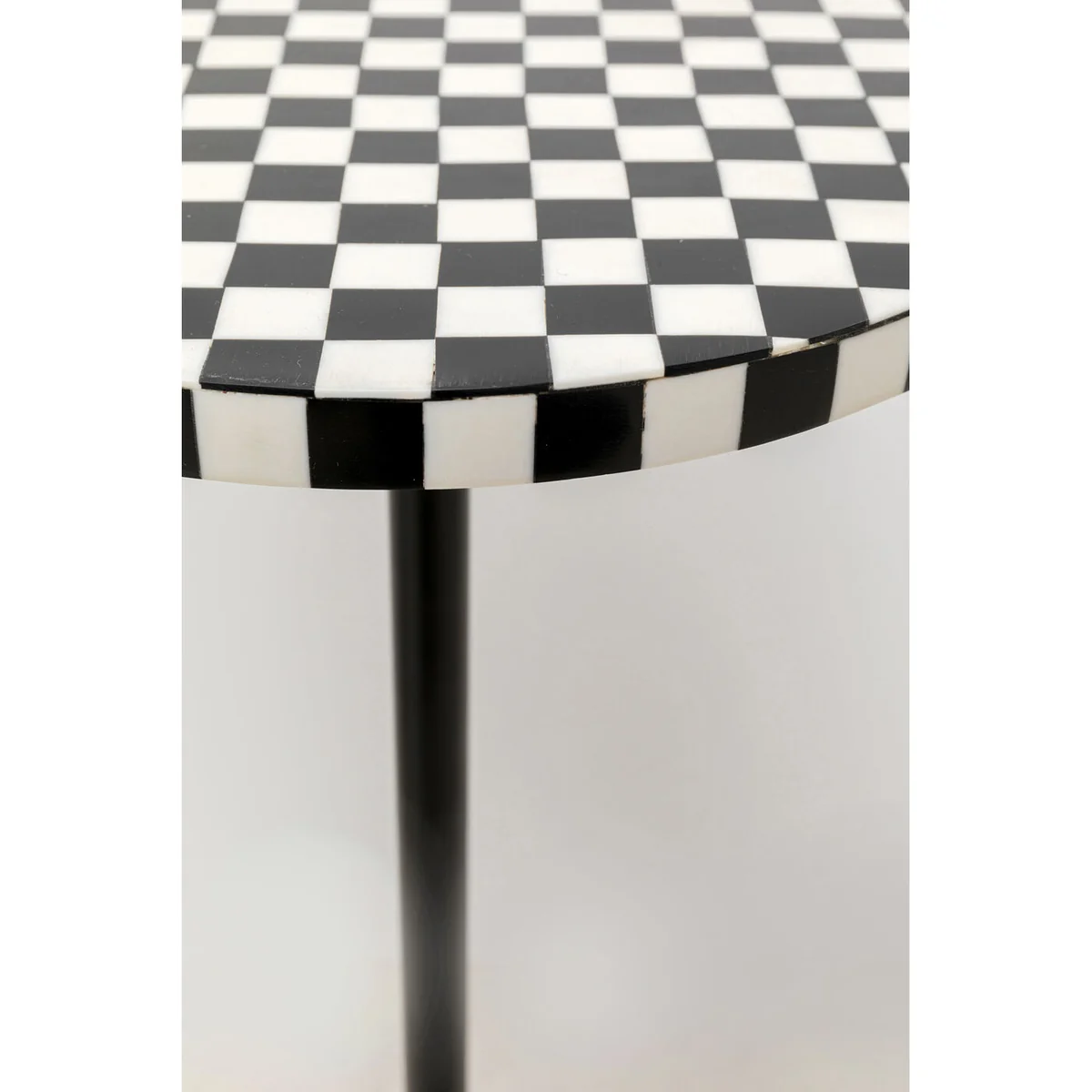 Introducing the Domero Chess Side Table in black and white steel - a unique blend of functionality and minimalist design.