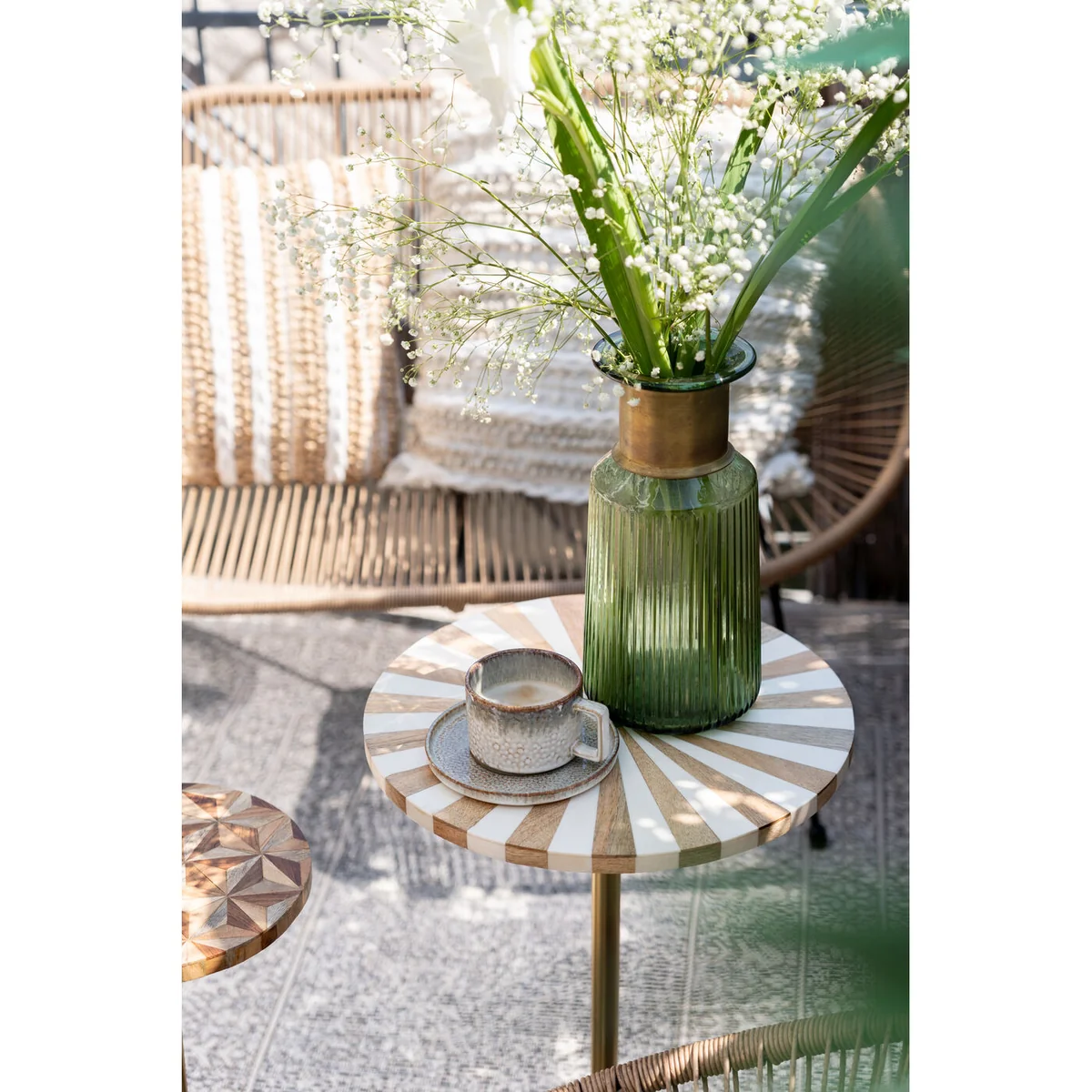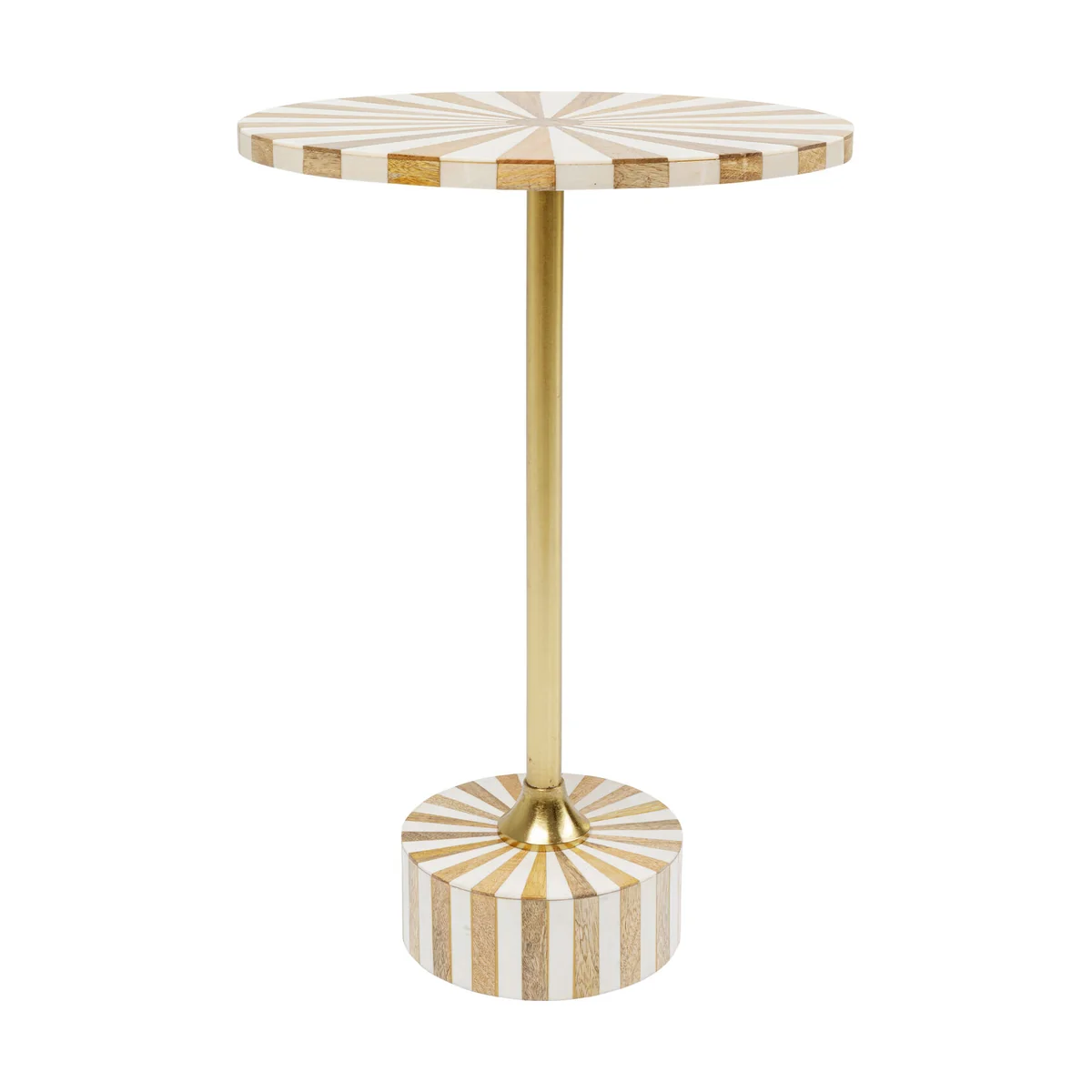 Featuring a diameter of 40cm and a height of 50cm, this compact side table is perfect for any room. The steel frame is brass-plated, providing an elegant gold finish. The round table top, painted in Cirque Gold White, adds a modern twist to the overall design.