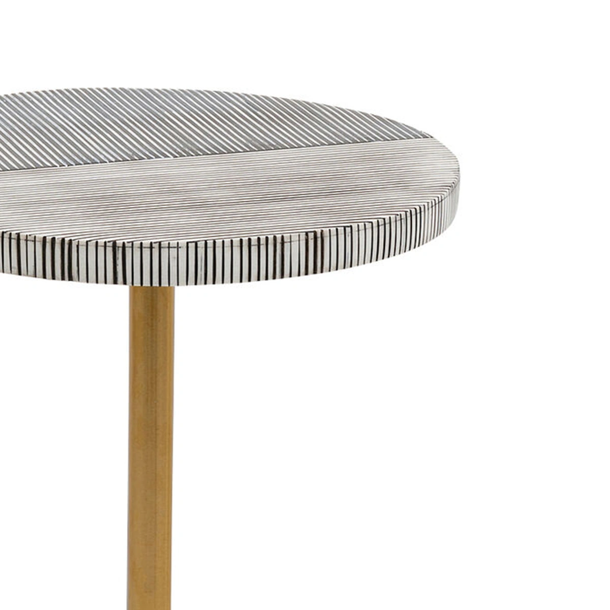 The Domero Double side table in black is a contemporary accent designed to bring modern structure and decorative detail into living spaces. Dual gold accents create visual interest.