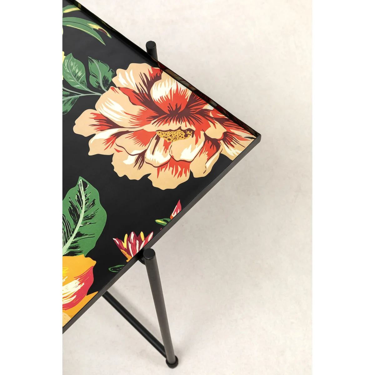 Bring nature's beauty into your home with the Flowers Garden Side Table set from Chattels & More! This stunning set of two matching square side tables features a multicolor floral design that will brighten any room. The steel powder-coated frames ensure durability while the compact size at just 45cm x 45cm makes them easy to fit in small spaces. With a convenient height of 50cm, they're perfect as accent tables next to sofas, chairs and beds. Give your decor a refreshing pop of color and style with this floral side table duo!
