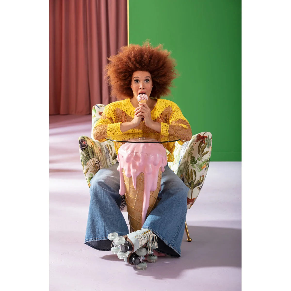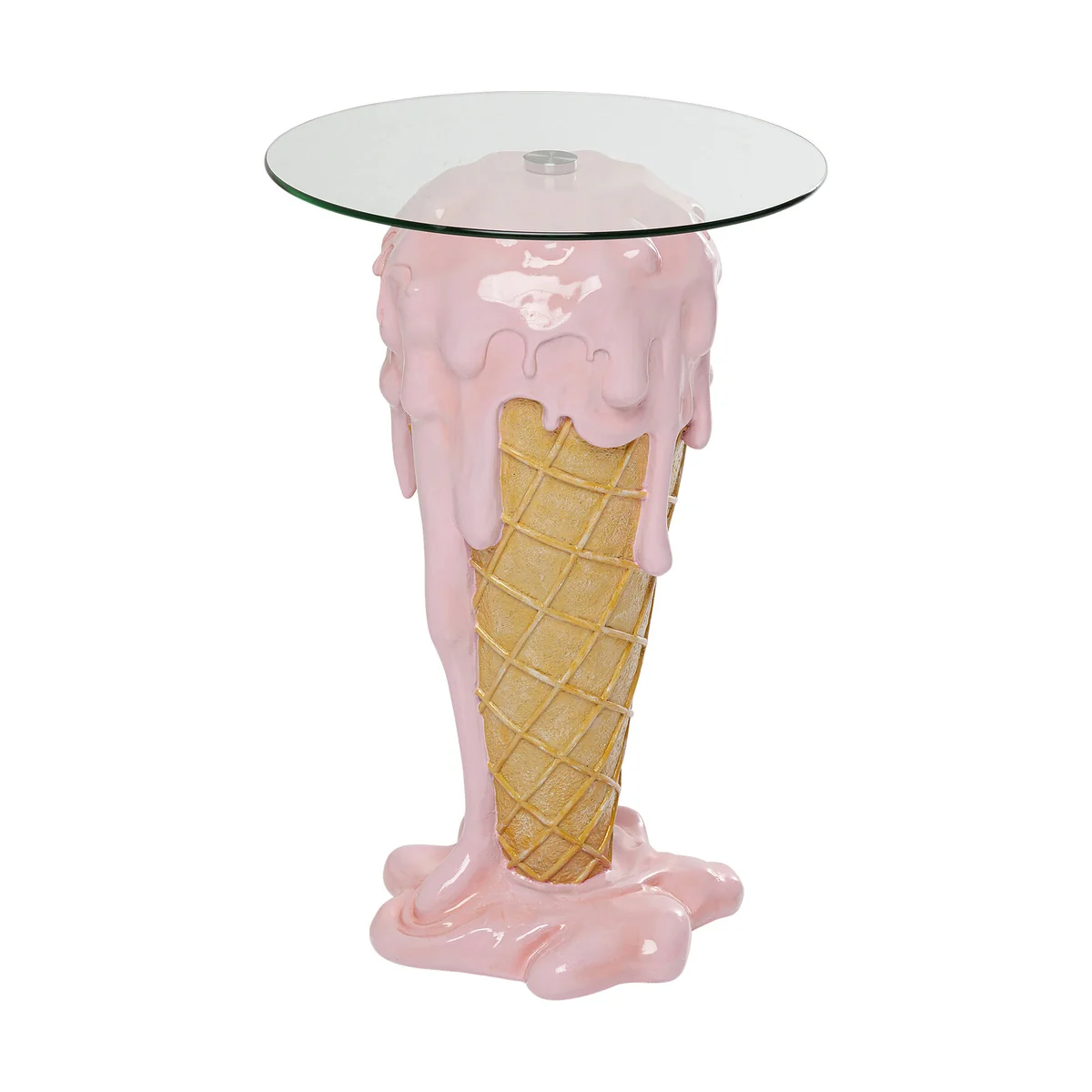 This is what the trend experts are talking about: Weirdcore. The name stands for the shrill and crazy interior design trend that has triggered so much hype on Pinterest with in-your-face home accessories and bright colours. We love eccentric furnishing Ideas, because they bring fun and joie de vivre into your four walls. And all this without a lot of investment or moving stuff around. Our glass table Icecream is the best example of this: an absolute eye-catcher with its trendy pink colouring and a melting ice cream. Icecream looks simply stunning as a living room table and in terms of furnishing there's nothing you can do wrong. Because the table is so unusual, it really is an attention-getter that goes well with any sofa and armchair, or even with the bed if you want to bring soft ice cream colours into the bedroom.