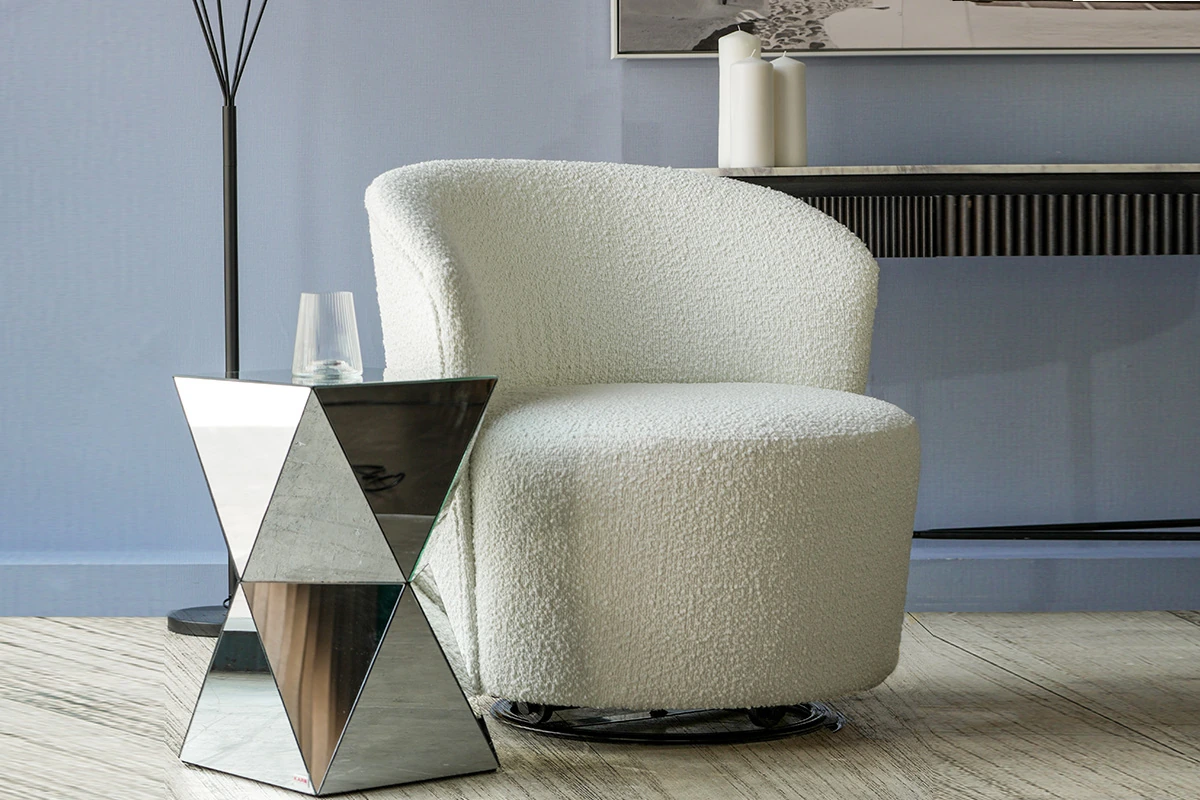 â— Mirrored furniture conjures up sophisticated effects through the reflection of light and its surroundings.