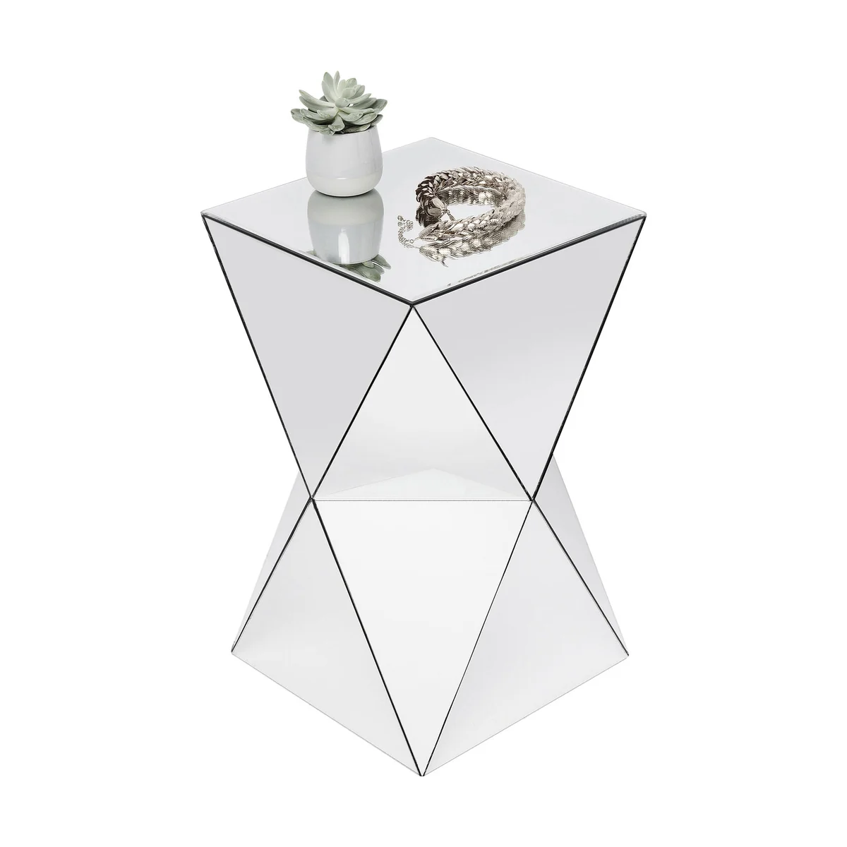 â— Mirrored, compact side table with fascinating reflections. â— Modern glamour and cool elegance - without being over the top. â— Not only an eyecatcher as a side table in the living room, also looks good next to the bed. â— Mirrored furniture conjures up sophisticated effects through the reflection of light and its surroundings. â— Luxury is a series of reflecting furniture with many different models and sizes.
