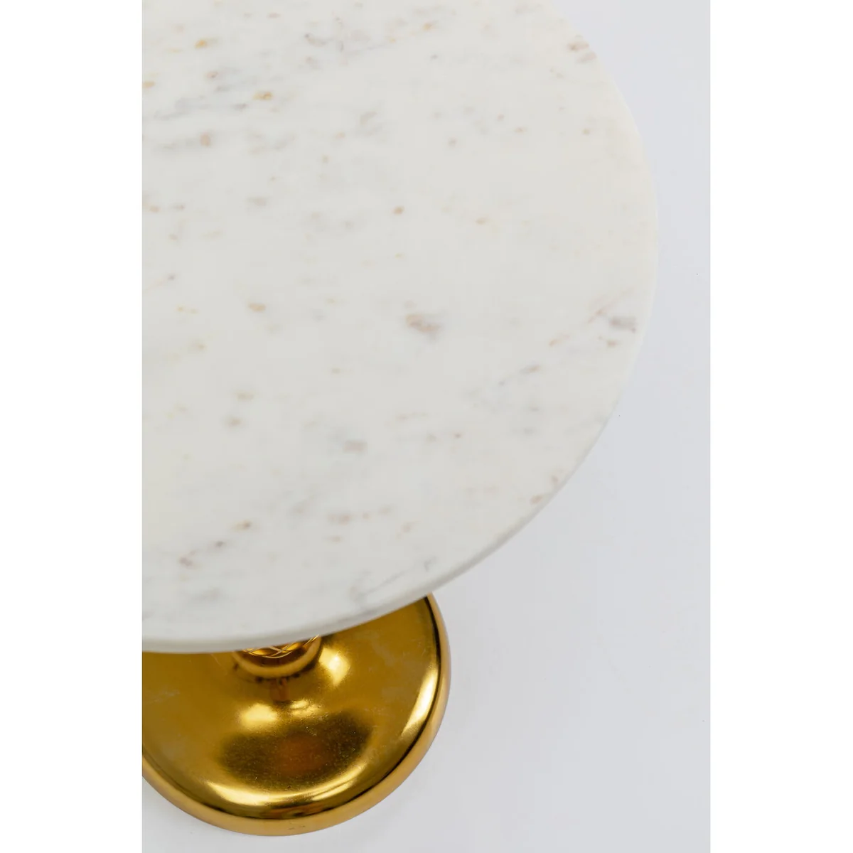 - A round living room table with real marble top and base in gold - Pineapple on a skewer - this witty design idea turns the side table into a highlight in the lounge - High-quality table base made of brass-coated aluminium - Compact: with a diameter of 36 cm the marble table fits anywhere - Elegance and glamour for the living room, bedroom or hallway