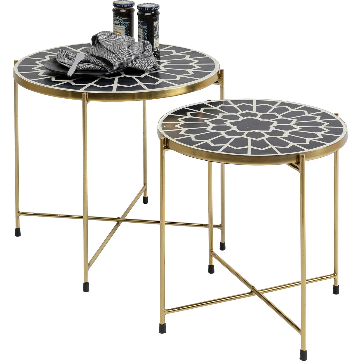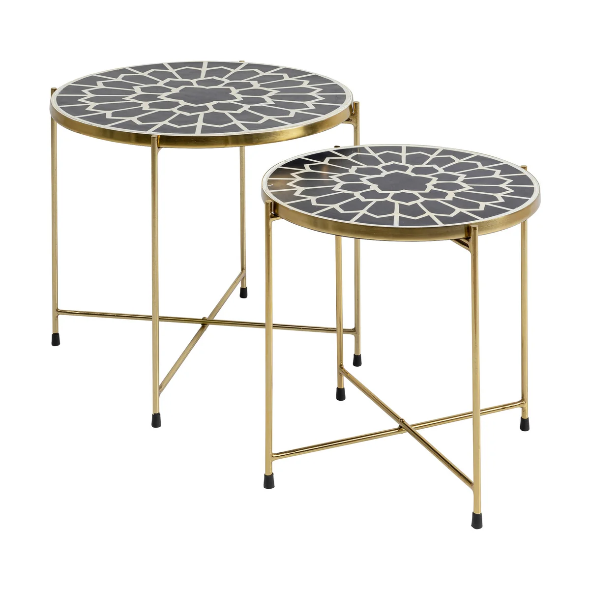 These modern side tables come in a set of 2: one table measures 50x50x50cm, the other 40x40x45cm. They work just as well in any room as a duo as they do as soloists. It is usually the small things that make a home a real home. Side tables play a big role in this, because they can be used in many ways, making your four walls cosier and offering space to beautifully display a pretty vase or a creative decoration. In the living room next to the armchair they make sure you always have everything at hand while reading, and are ideal as a nightstand for the bedroom.