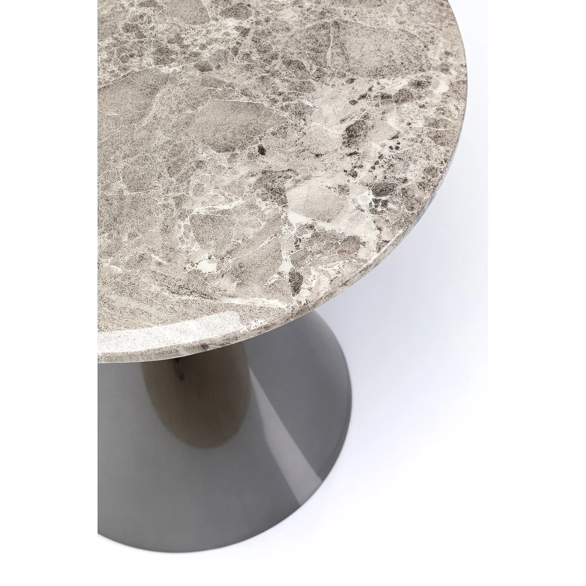 The round side table in black with an imitation stone top by KARE is a modern piece of designer furniture that will add a stylish touch to any room. The easy-care cultured marble top is robust and resistant, while the high-quality polished stainless steel table base in the shape of a cone creates an elegant look. With its compact size of 53 x 50 x 50 centimetres, the table is perfect as a nightstand in the bedroom or as a stylish element in the living room or hallway.