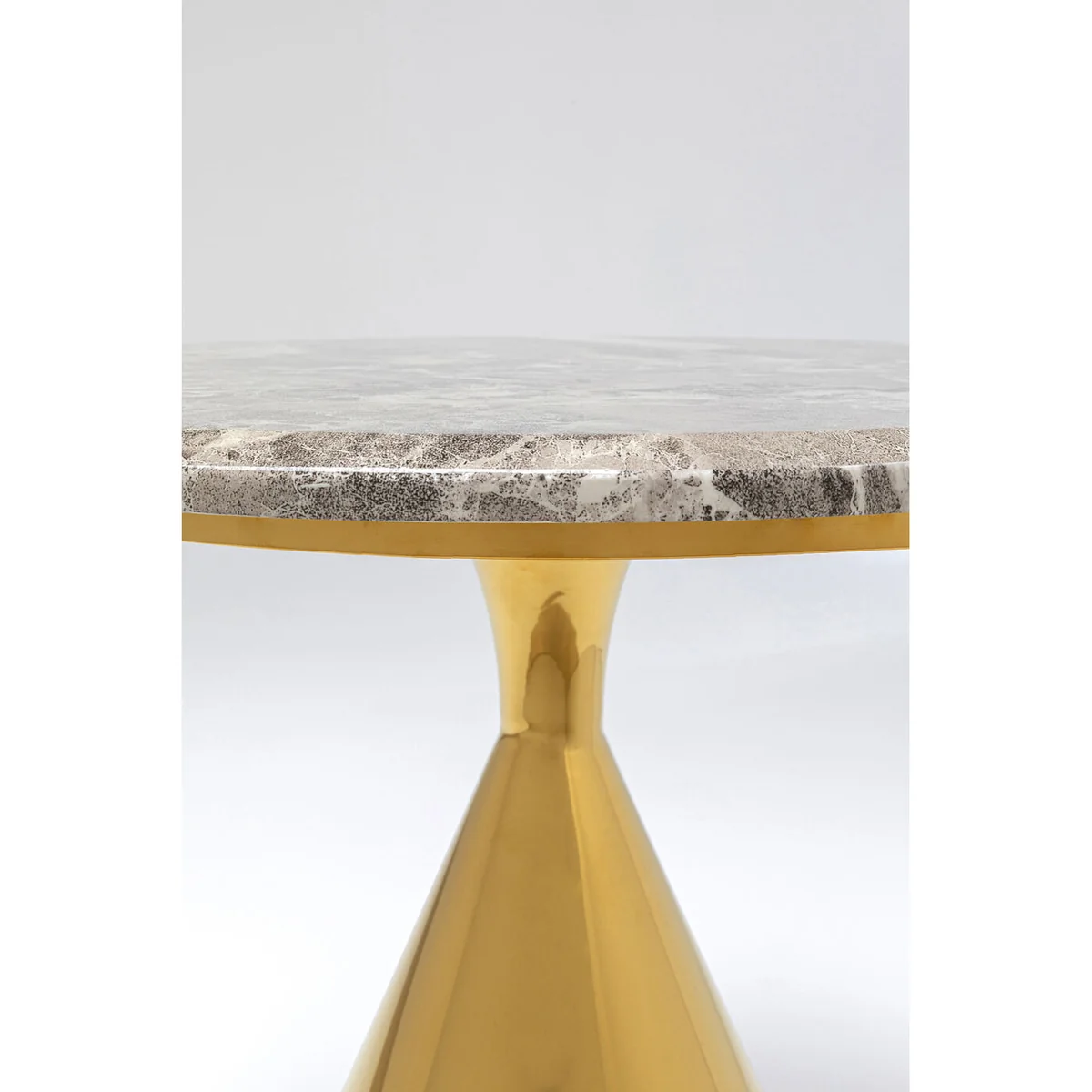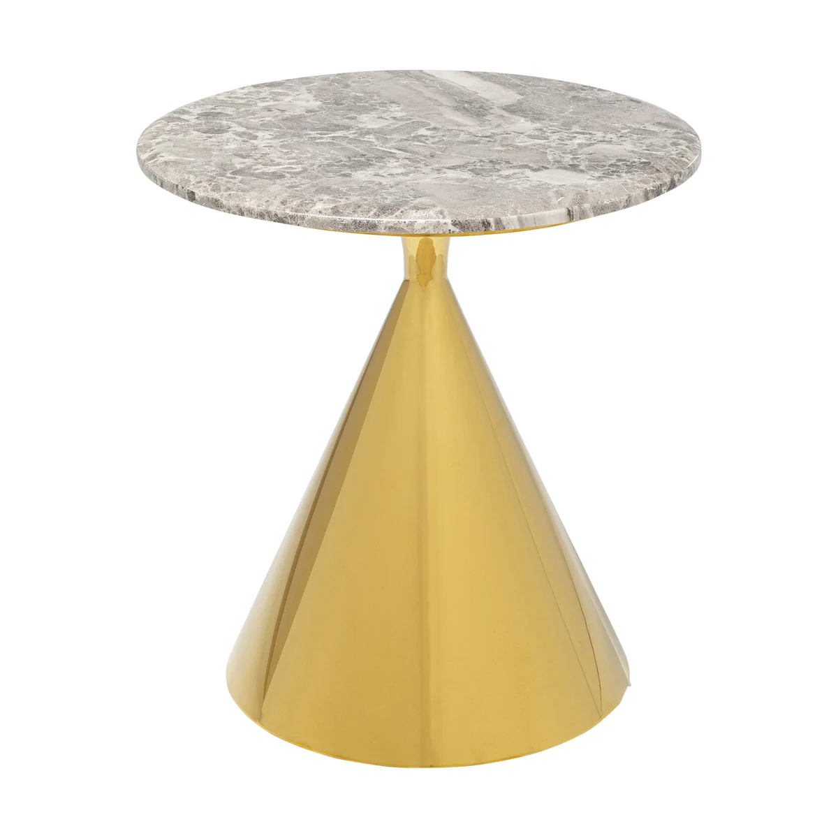 The Rita Side Table measures 50 cm in length, width, and stands 53 cm tall. It's beautifully finished in polished stainless steel for a gleaming gold finish. The tabletop is made of toughened safety glass, ensuring durability and safety.