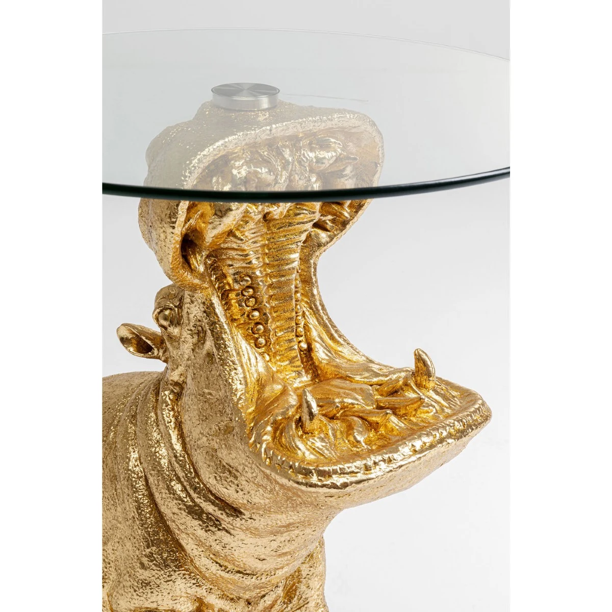 Golden Sitting Rhino Side Table, Polyresin, Ø48cm