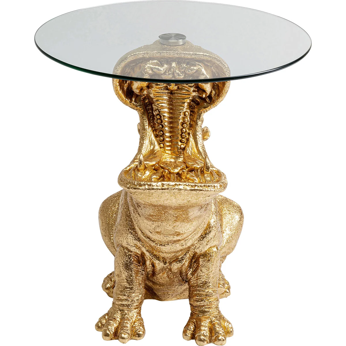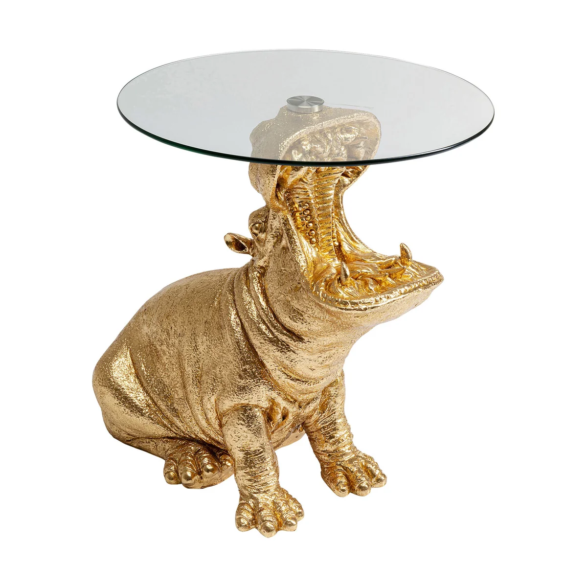 Key features include its sturdy polyresin frame, a golden finish giving it a luxurious touch, and an impressive side table design in the shape of a sitting rhino. With dimensions of L 49 cm | W 58 cm | H 60 cm, it fits comfortably in any modern living room or office.