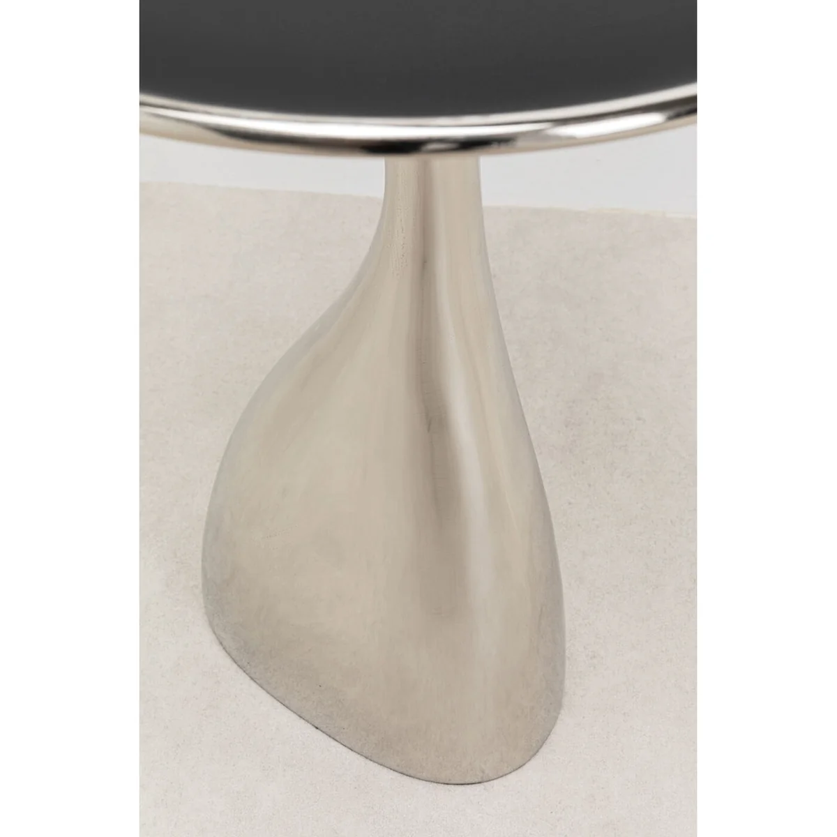 • Sleek and airy rounded aluminum tabletop with silver nickel-plated legs