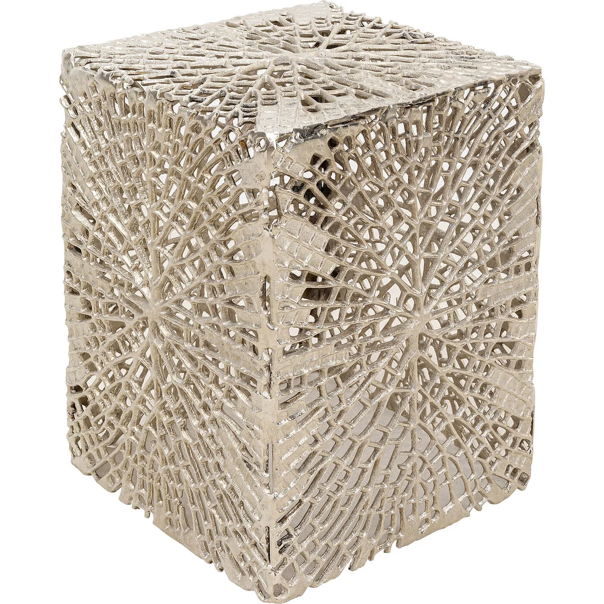 Anyone who is looking for flexible space to put things on next to the sofa or armchair is well served by several, small living room tables. Like these two cubes, which you can place as a set next to the sofa or as individual eye-catchers in front of and next to the living room landscape. The advantage of these silver tables is their unusual, artistic design. Individual pieces like these go with any style of furnishing, whether classical, modern or minimalist. Those who love cool glamour are always well advised to choose furniture in the colours chrome or silver. The dimensions in detail: the large side table 49 x 32.5 x 32.5 cm, the smaller one 42 x 29 x 29cm (H/W/D).