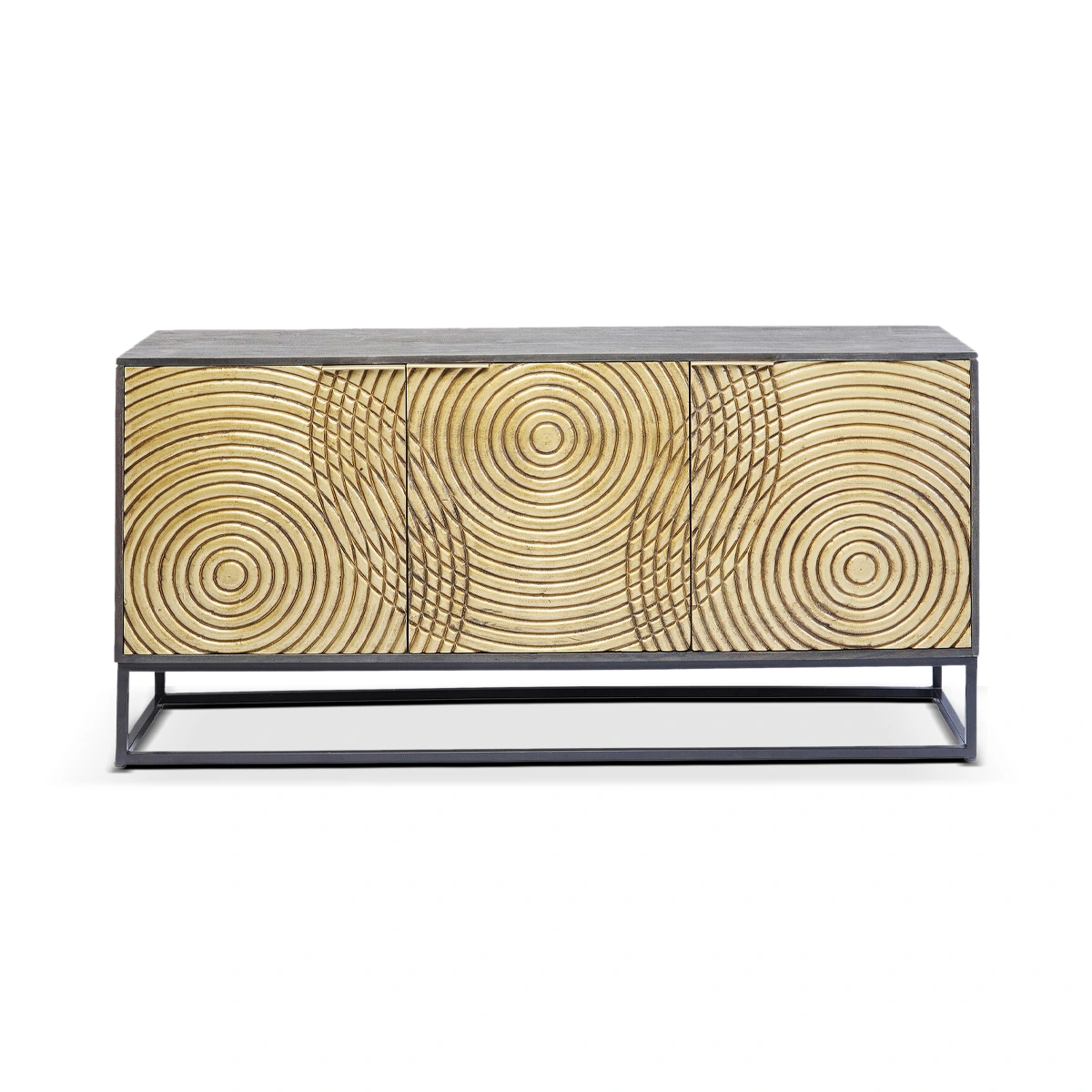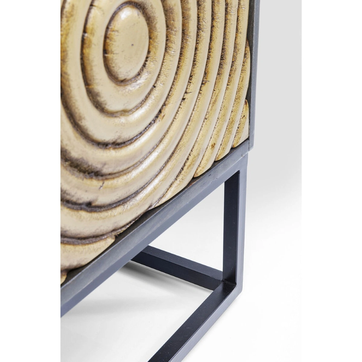 It's the contrast that does it. The shape of this solid wood sideboard is strictly graphic and restrained. But the pattern on the doors is magical! Countless circles are carved into the wood with fine lines. Behind the three artfully decorated doors of Circulo there is a lot of storage space, which may not be magical, but it is impressive! Also available as a cupboard.
