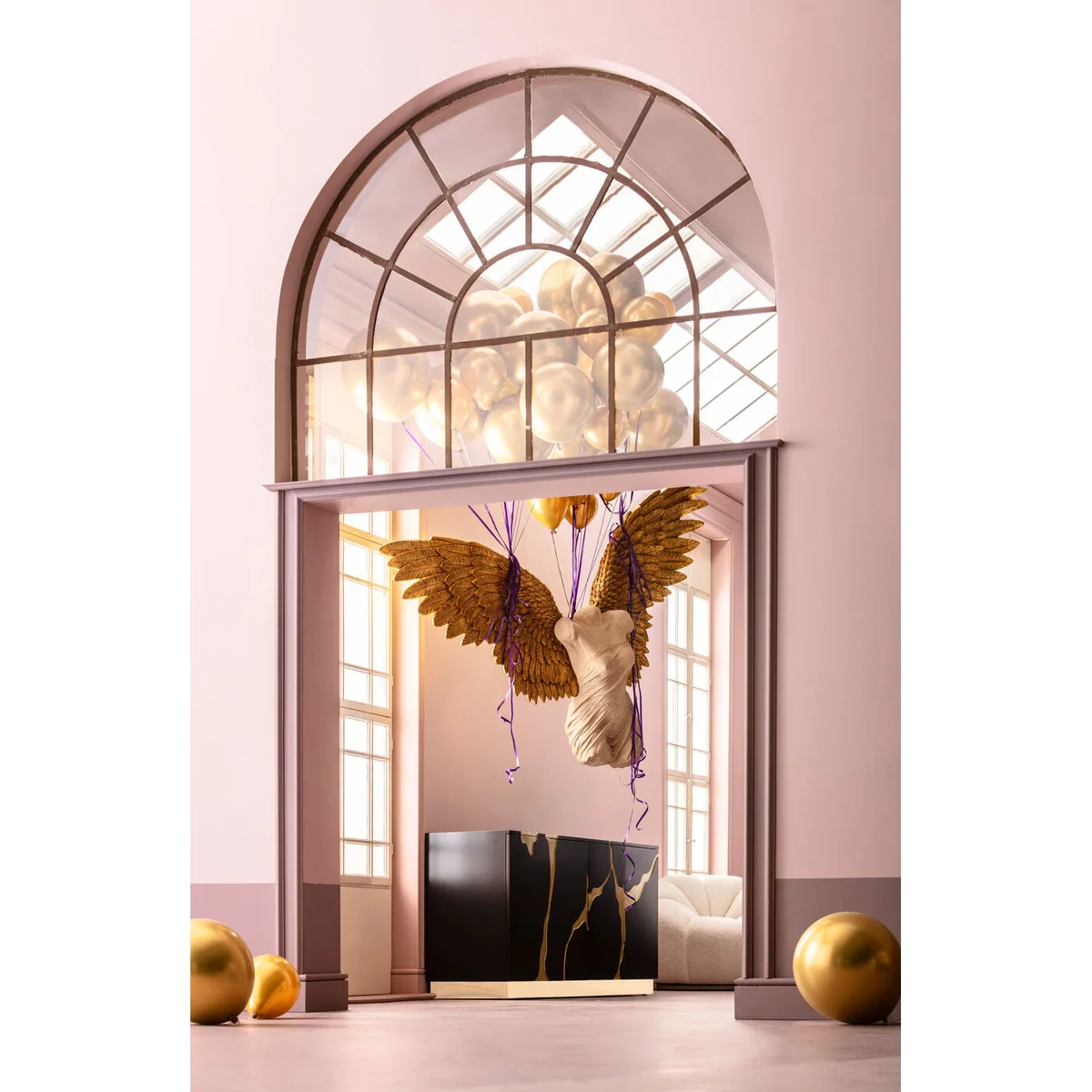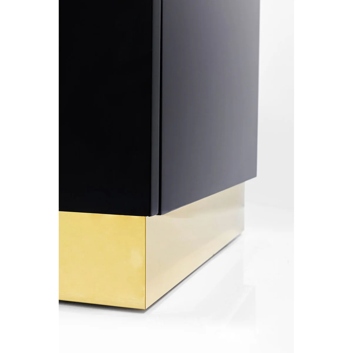 The sideboard will add a certain kick to your living area! With the unique design of the golden base and golden lines it gives the impression that the black cladding has been given an artistic finish. Absolutely creative and a great attention-getter! The sideboard in a luxury look can also be used as an alternative to a TV board and offers enough storage space with four adjustable shelves. The practical push-to-open function means that you can open the doors without the need for handles, which maintains the clean, modern look of the sideboard.