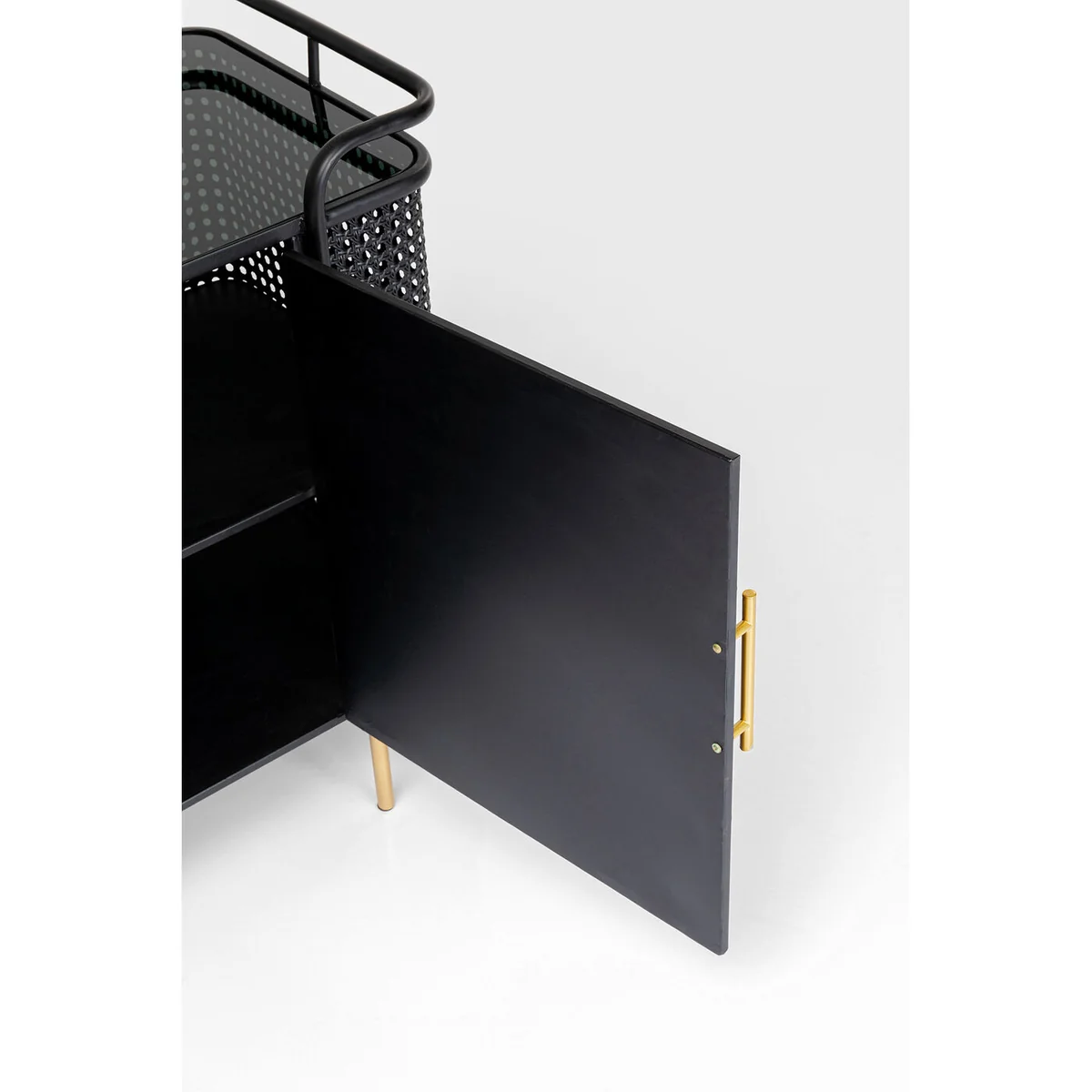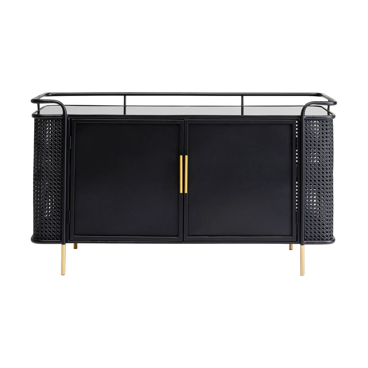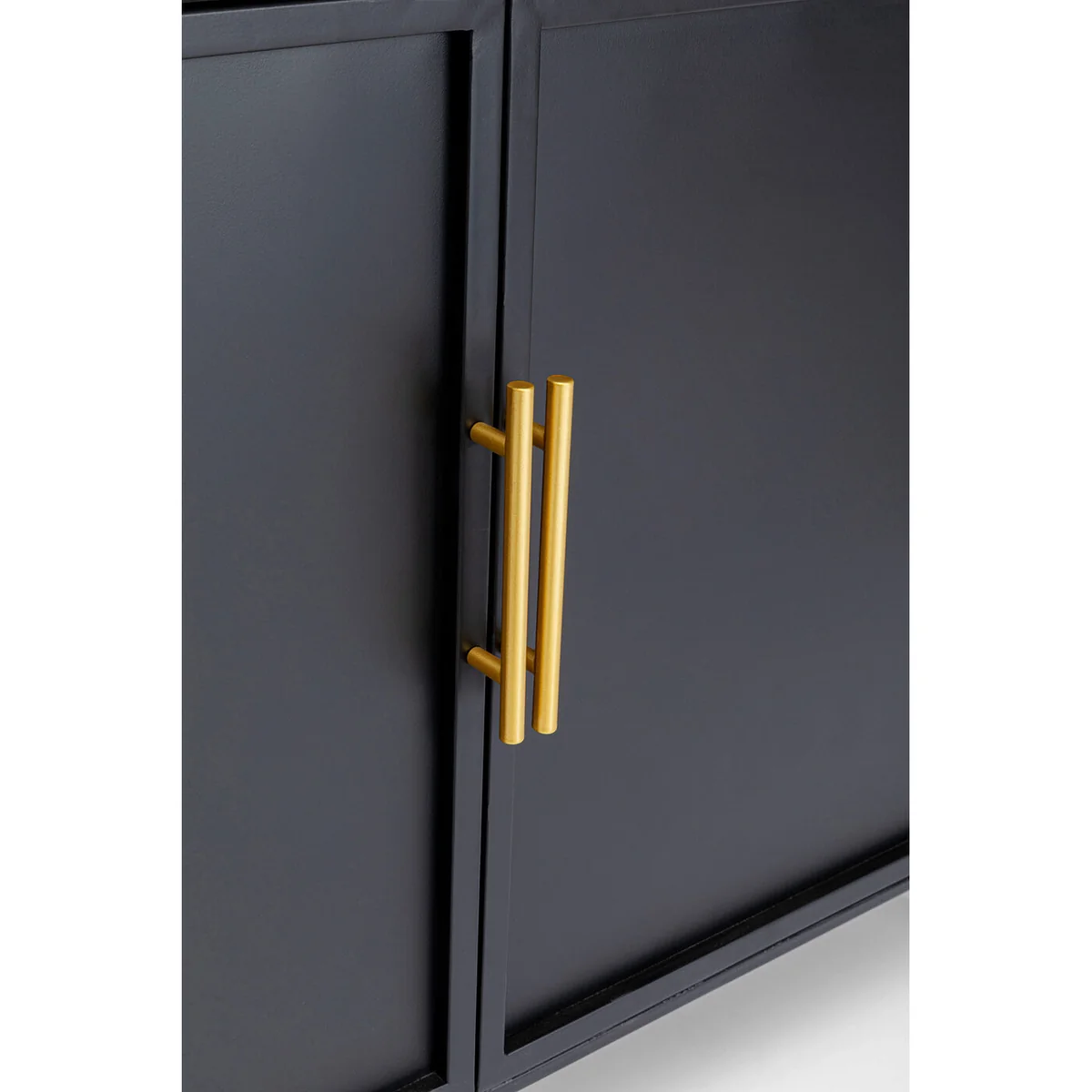 • Black metal sideboard with golden feet and handles, measuring 70 x 120 x 40 centimetres (H/W/D) • Steel furniture wi