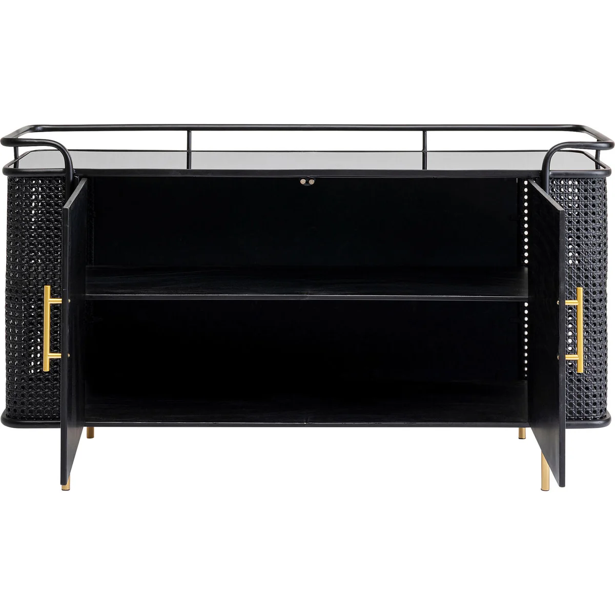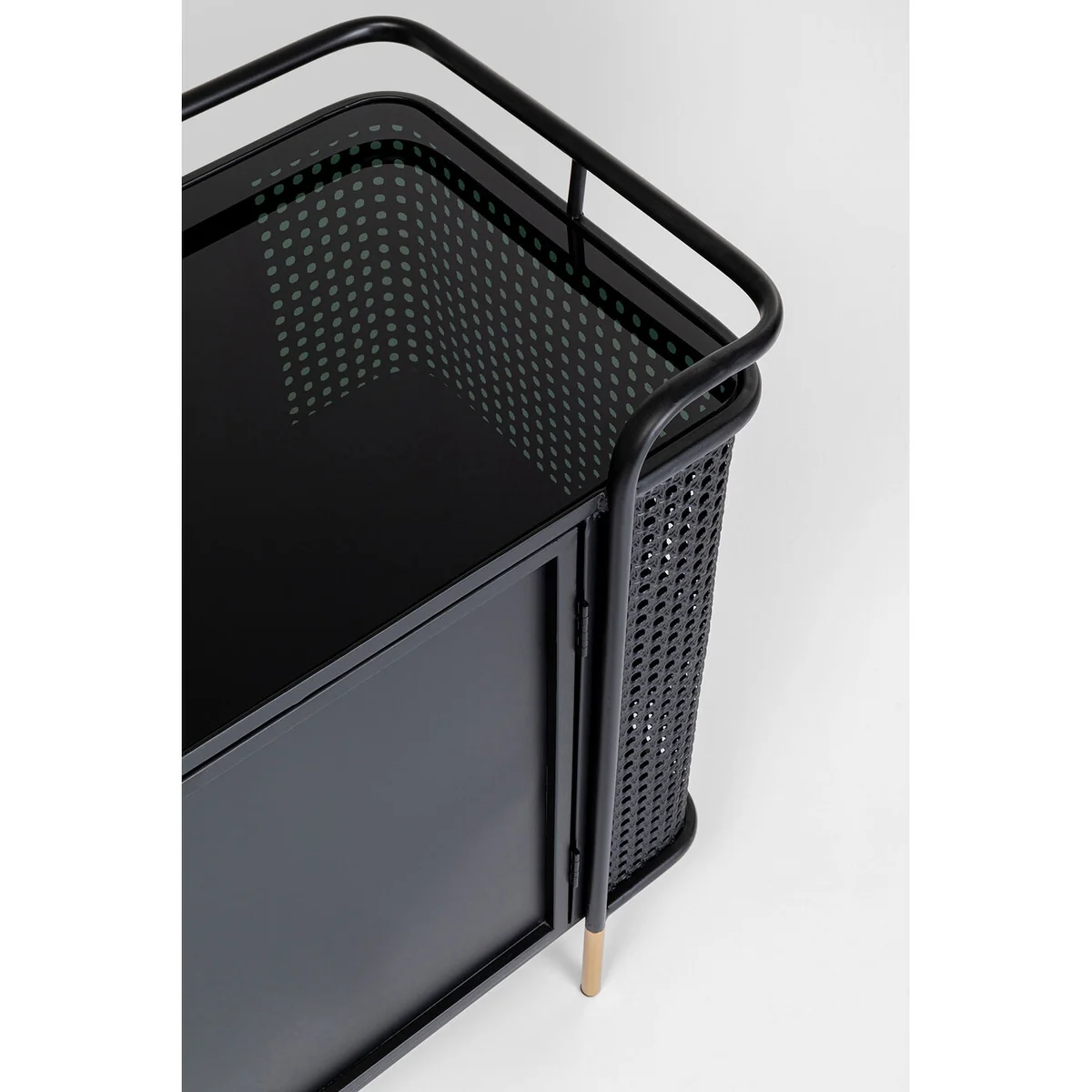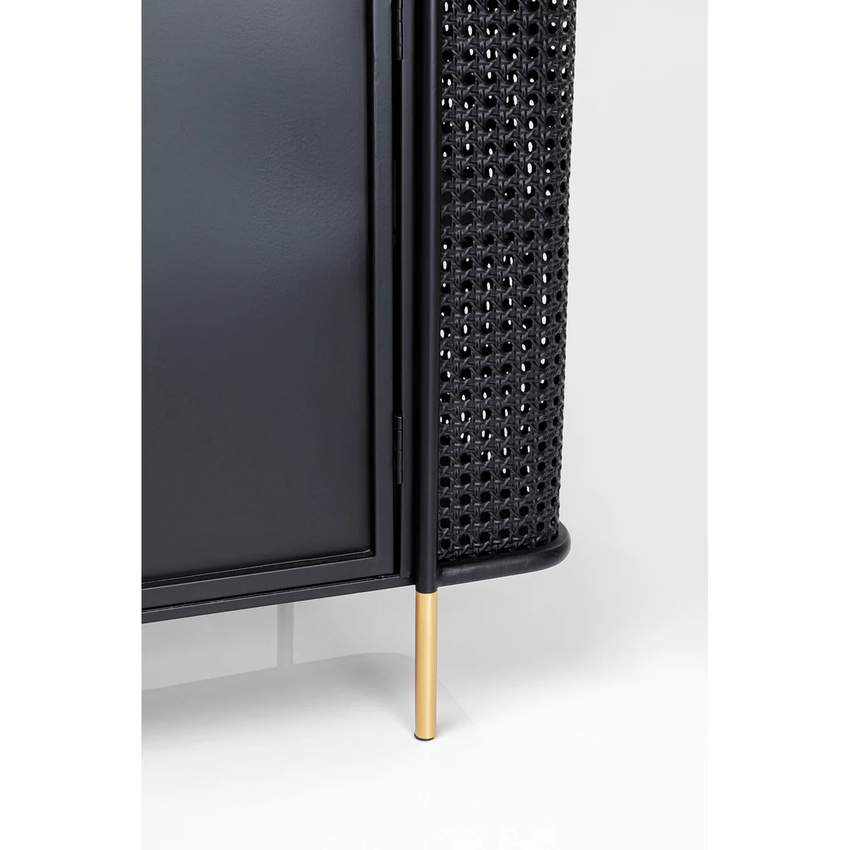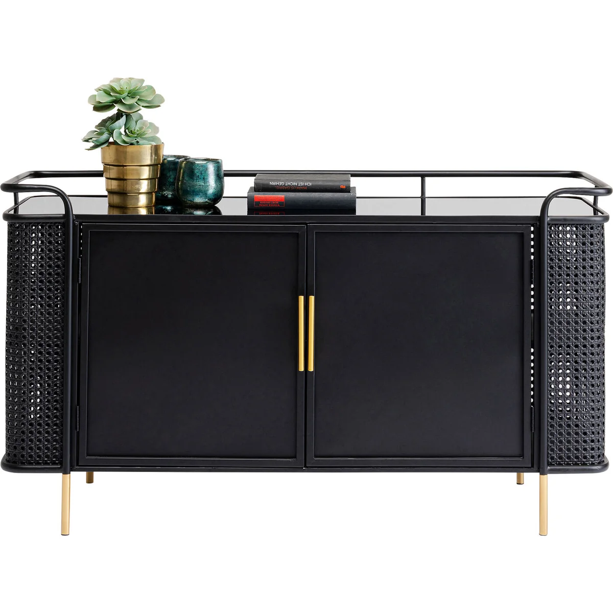 • Black metal sideboard with golden feet and handles, measuring 70 x 120 x 40 centimetres (H/W/D) • Steel furniture wi