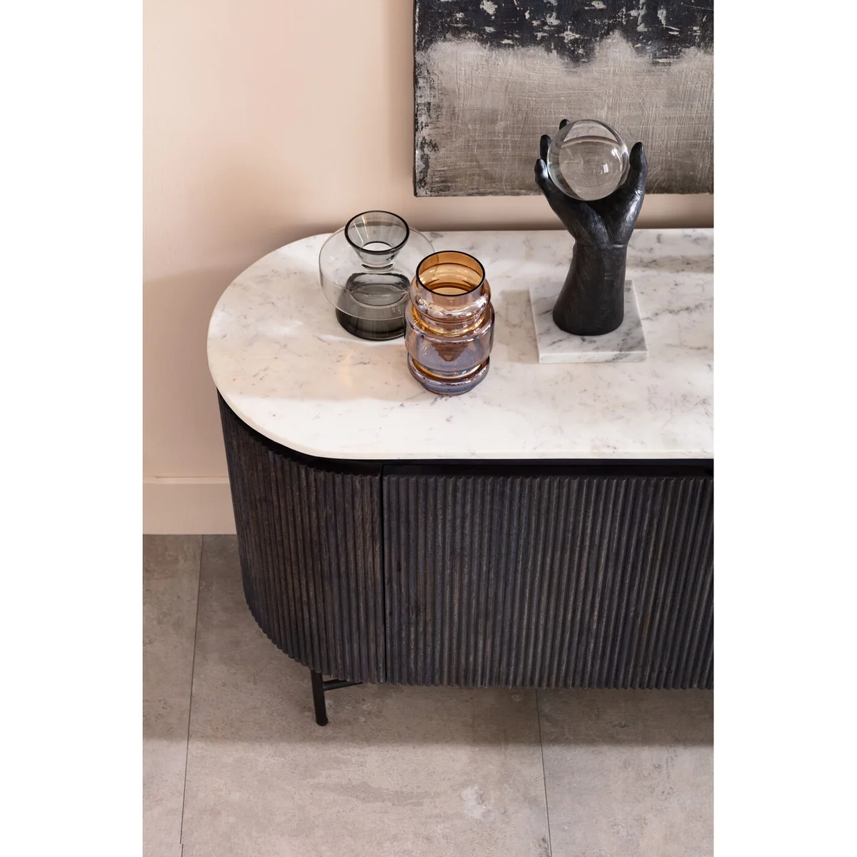 Introducing the Glenn Sideboard in dark grey light marble finish, a contemporary addition to your home decor. Crafted from Mango solid wood, this piece is both elegant and durable.