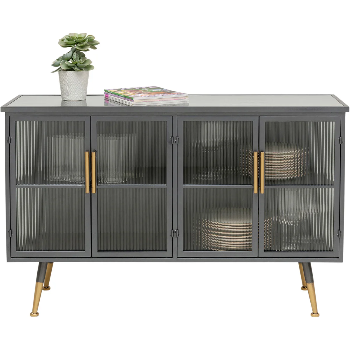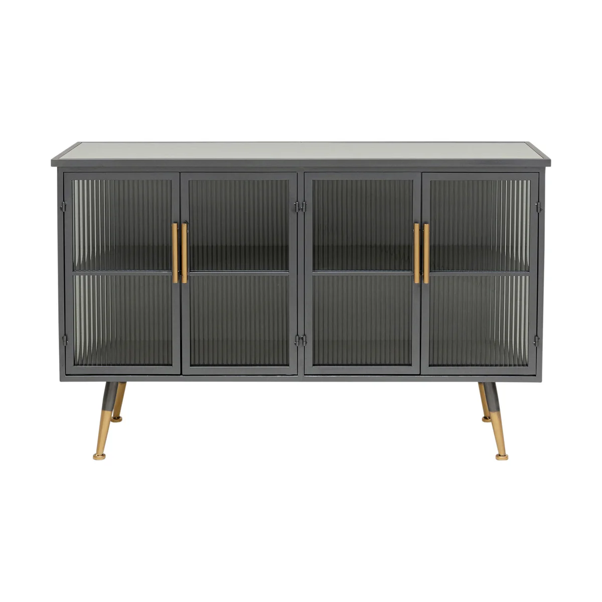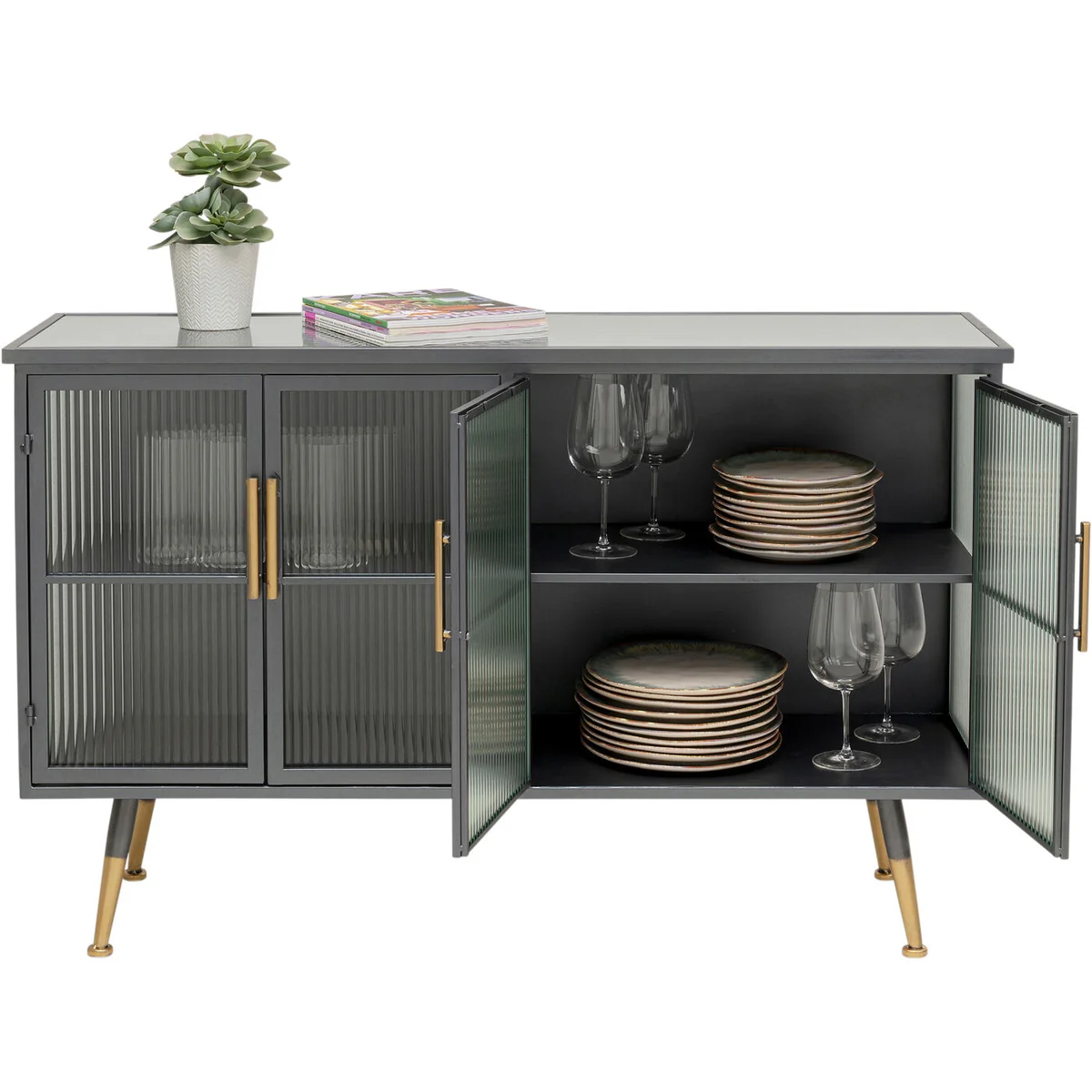 Featuring a sleek black lacquer finish, this sideboard is made from top-notch Medium Density Fibreboard (MDF). It spans 120 cm in length, has a depth of 38 cm, and a height of 75 cm. The design includes four doors for ample storage space, giving you plenty of room to store your belongings.