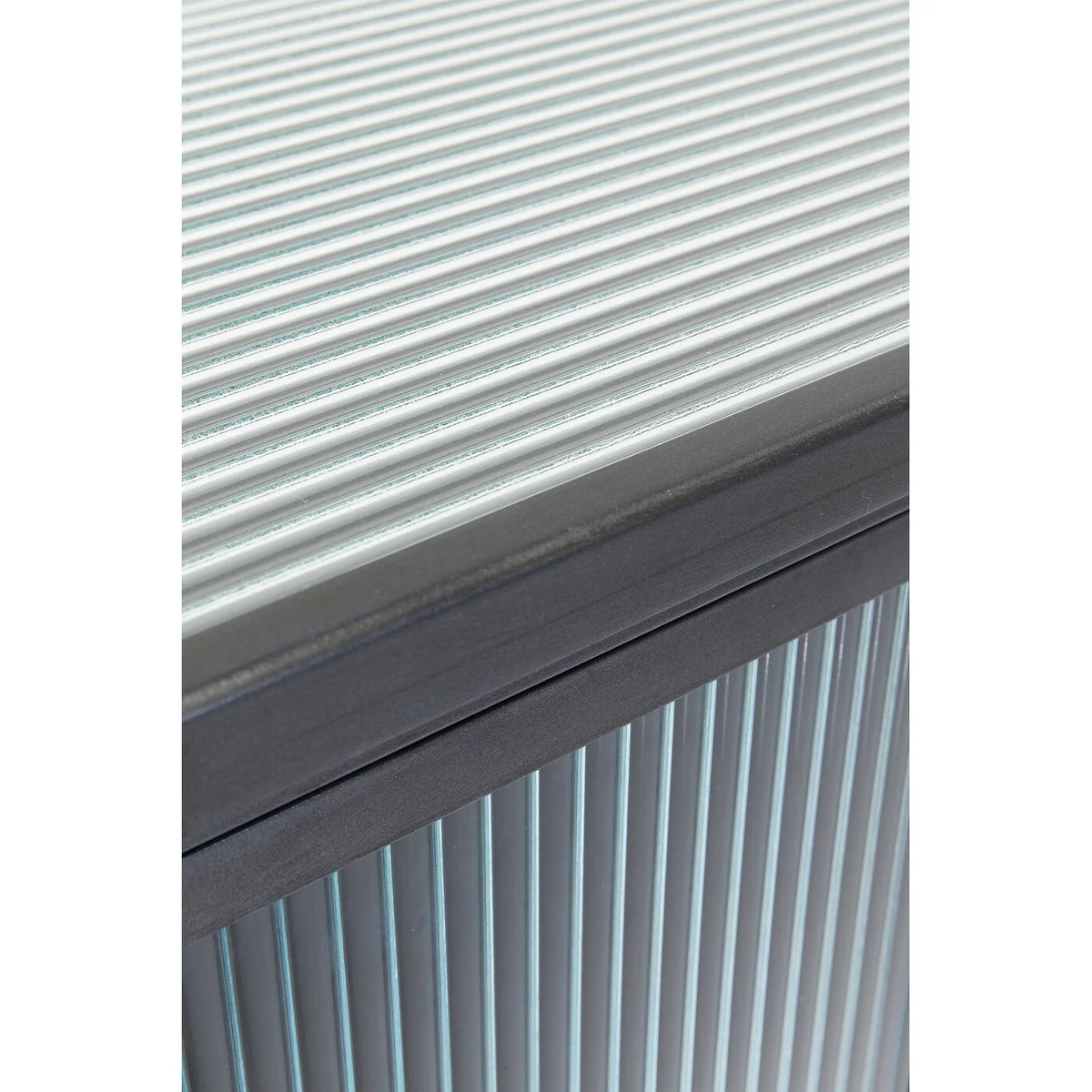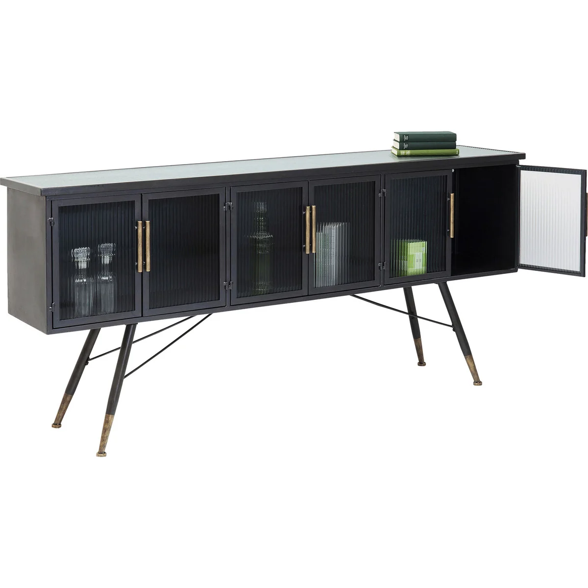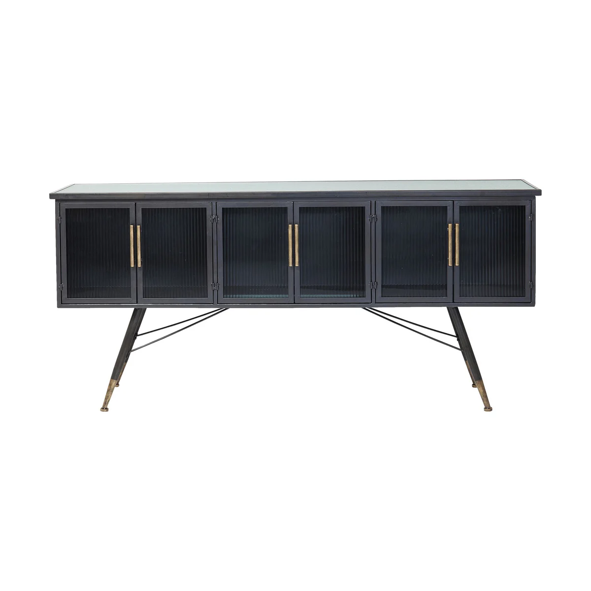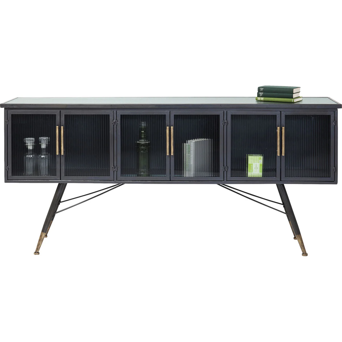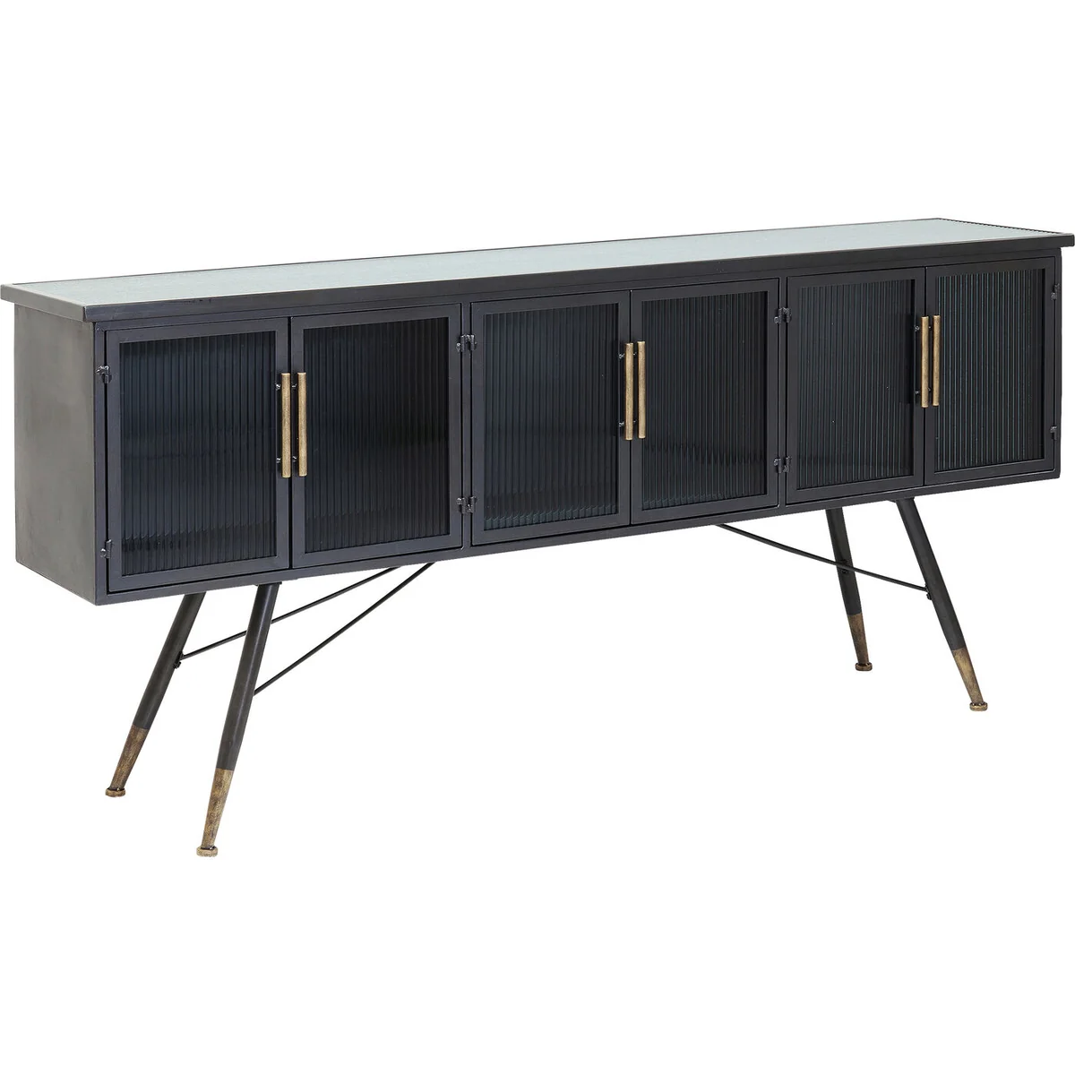 Coated steel and glass - these are the ingredients that define the casual look of this six-door sideboard. While the frame of this storage wonder is made of steel and is reminiscent of industrial design, the fronts and sides are made of grooved glass - this gives the sideboard a certain elegance and lightness. The La Gomera series, which includes various cabinets and chests of drawers, is characterised by a mix of steel and glass materials, distinctive lines and slightly flared feet.