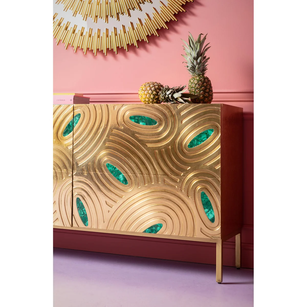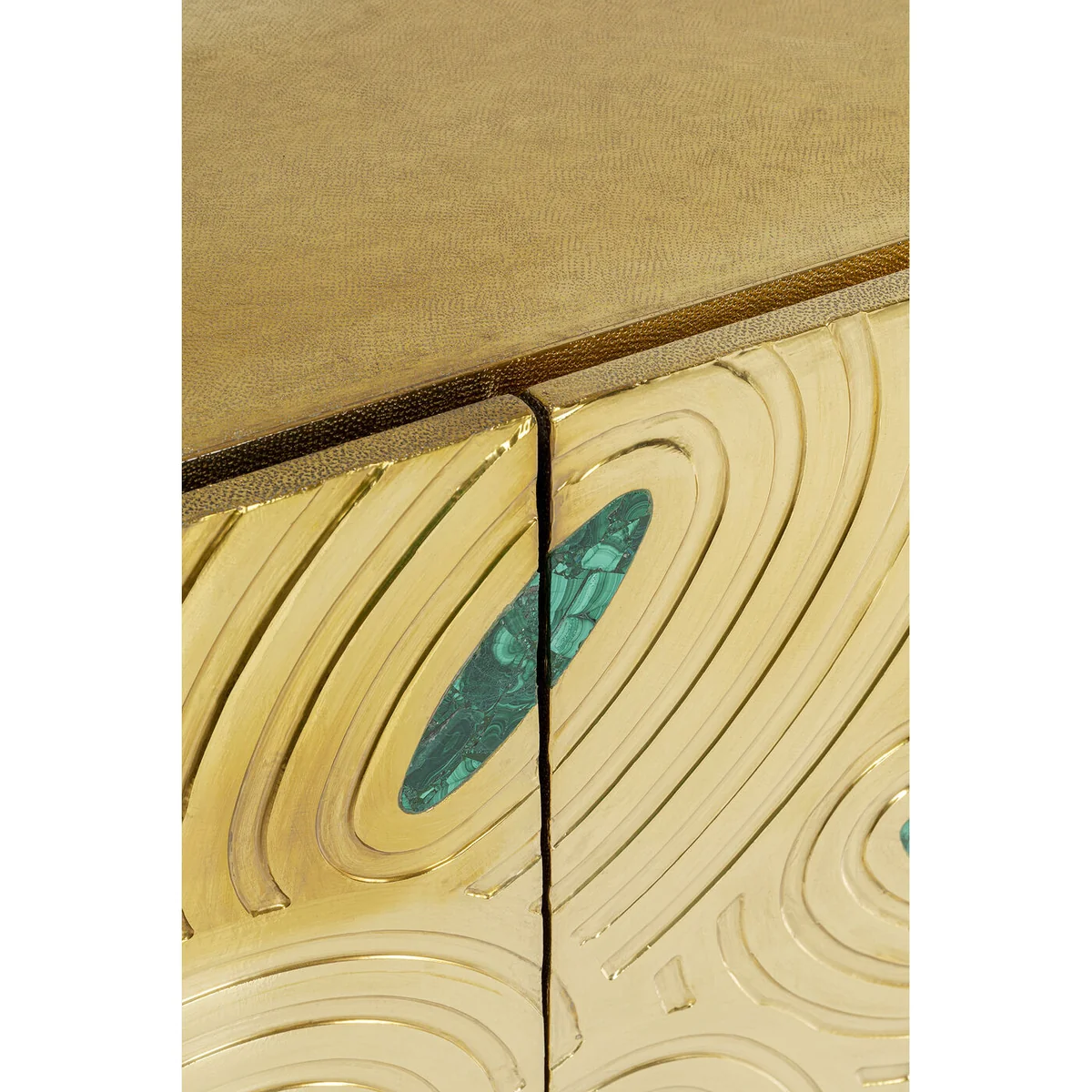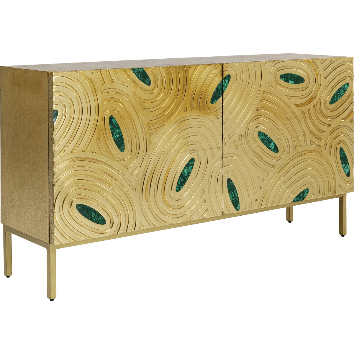 | Material: | Corpus and fronts: Mango Medium density fibreboard (MDF) Lacquered, Steel brass-plated, Intarsia: Epoxy resin, Foot/Base: Steel brass-plated, Paneling: Steel brass-plated |