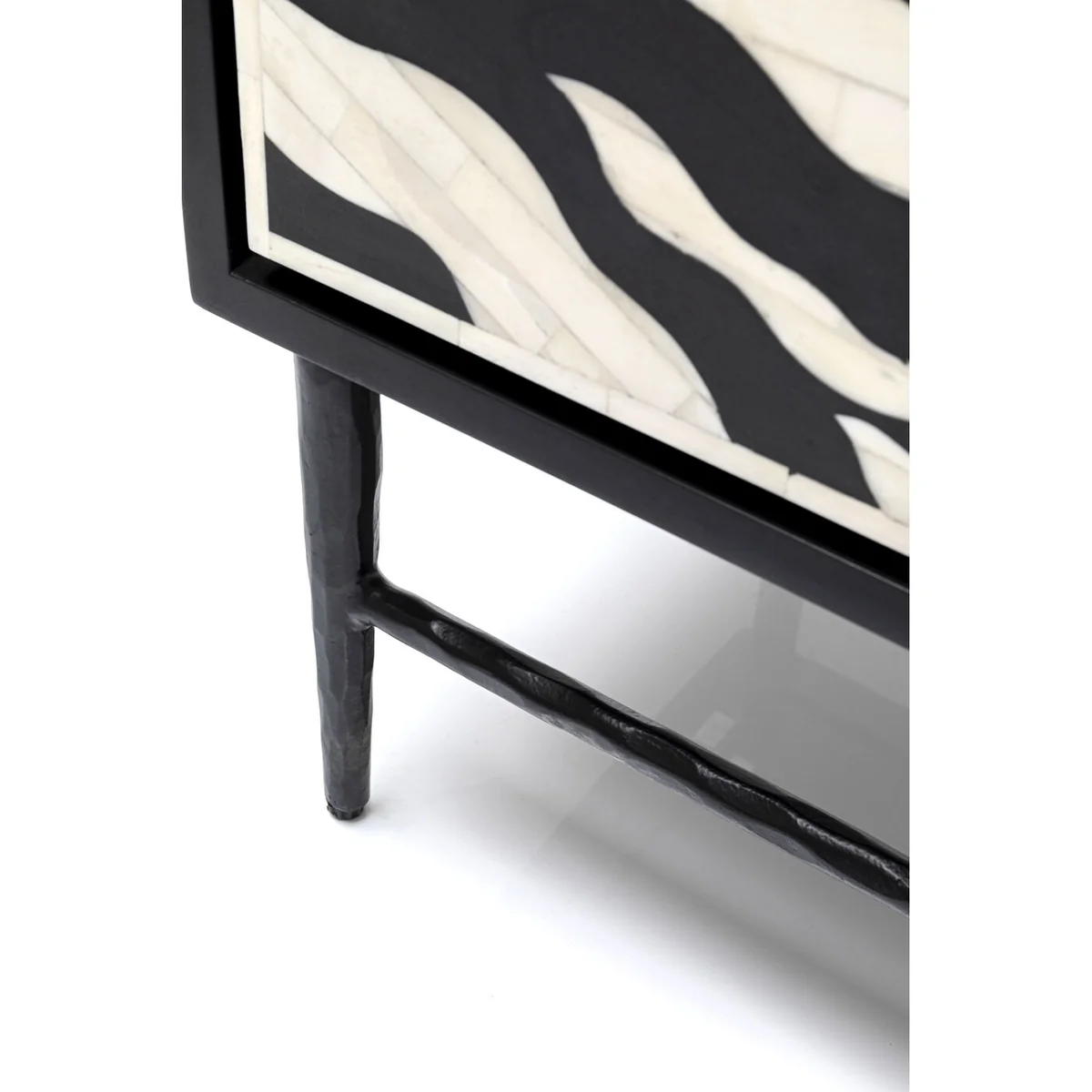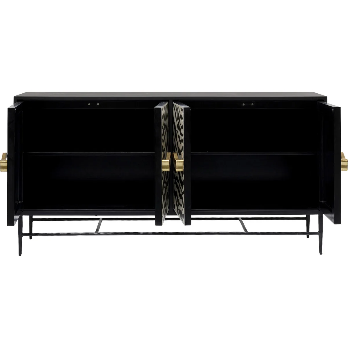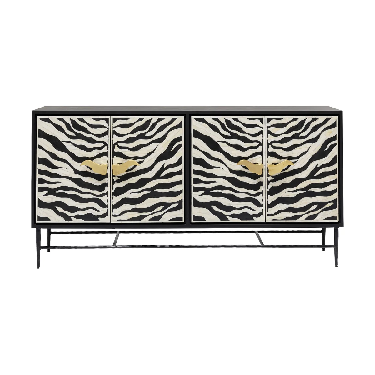 • Handcrafted: the ornate front in black and natural white is partially handmade, each piece is unique • A focal point: with its zebra look and handles in gold, this sideboard is a declaration of special taste in the living room • Dining room: upgrade your dining area with this sideboard. Glasses, crockery and cutlery can be wonderfully stored inside it • Inspiration: transforms your bedroom into a luxury oasis and offers plenty of space for clothes, jewellery and secrets • Ambience: whether classic, modern or glamorous, the 160 x 80 cm x 40 cm sideboard is a convers