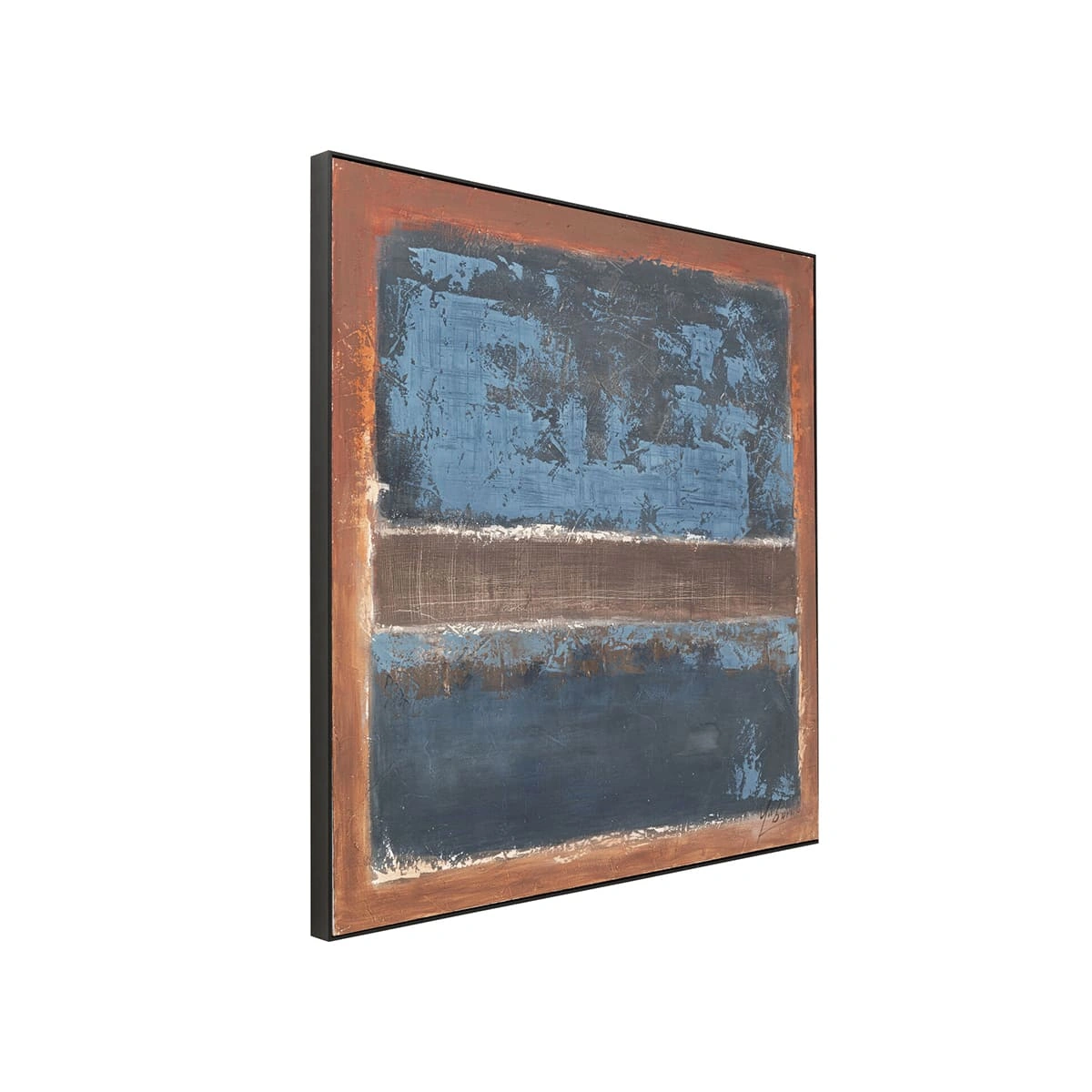 • Framed picture with abstract motif in blue and brown, 120 x 120 x 5 centimeters (H/W/D)