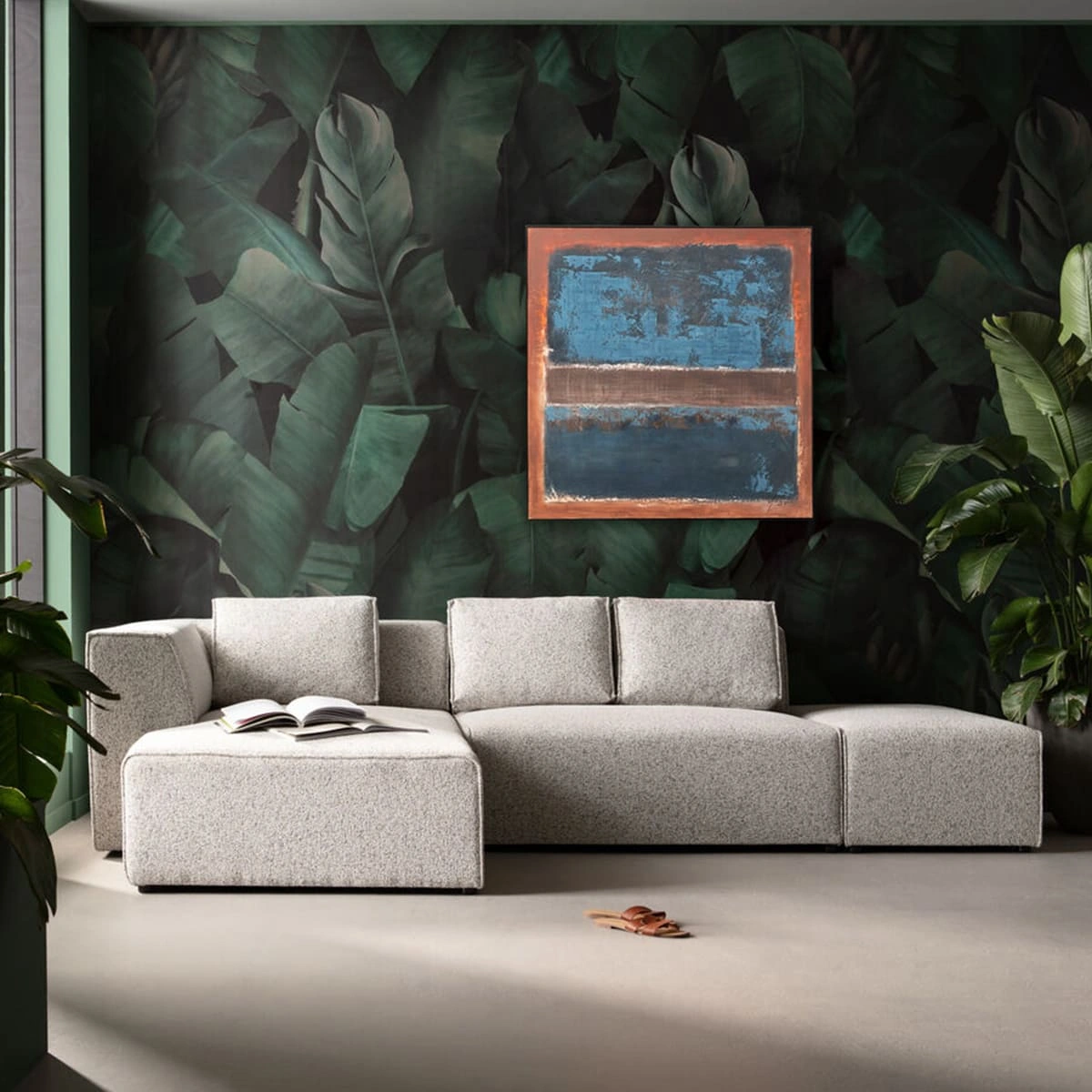 The framed picture in cool blue and warm brown tones radiates calm, harmony and timeless elegance. With its soft colors and minimalist design, it blends perfectly into modern, urban or natural living styles. It is particularly effective above the sofa, in the dining area or in hallways. In combination with subtle tones, wood or metal accents, it creates a harmonious, stylish atmosphere that has a calming and inviting effect. A true masterpiece for any interior, bringing both calm and character to the home.