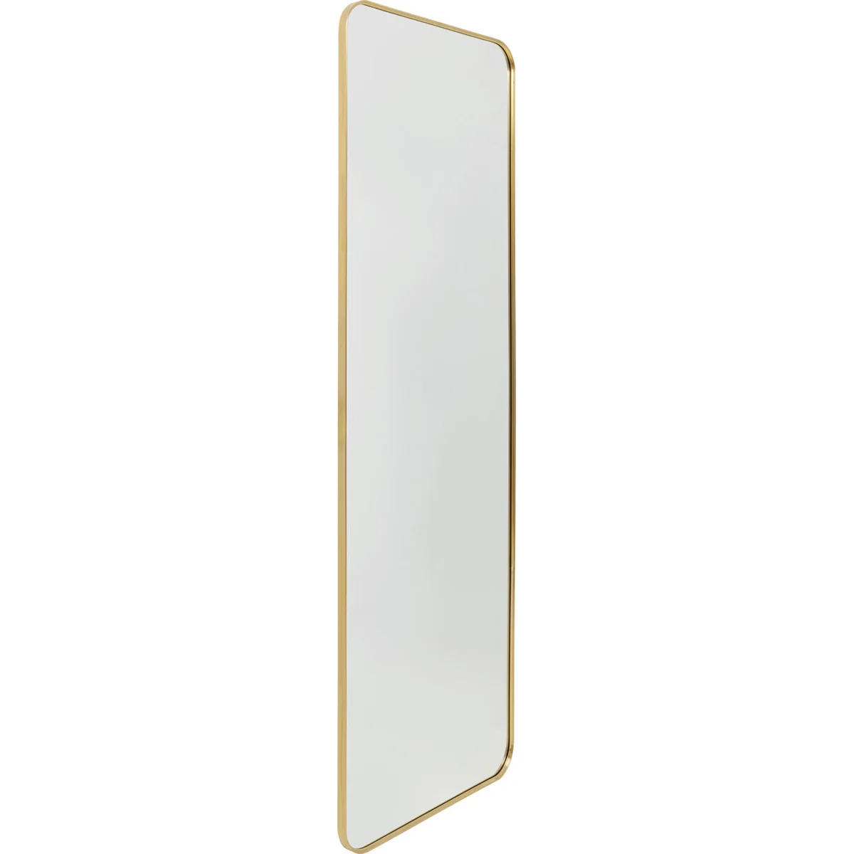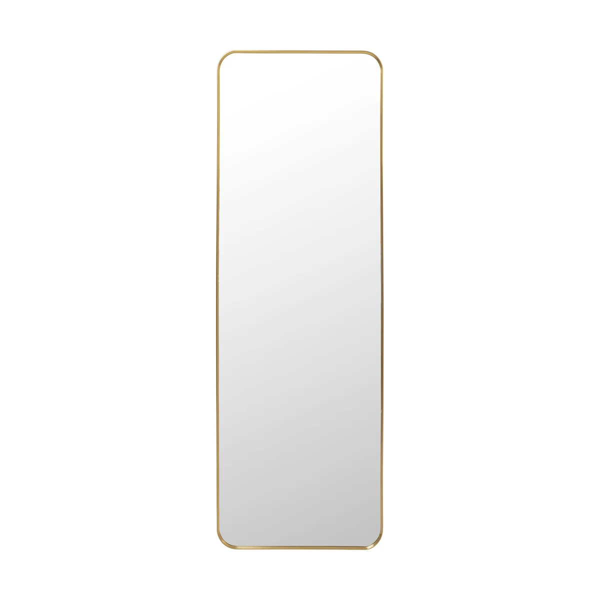The mirror measures 60 cm in length, 2.5 cm in width, and 180 cm in height. It features a reflective glass surface encased in a brass-finish steel frame, adding a touch of warmth and sophistication to your interiors. Perfectly sized for hallways, bedrooms, or dressing corners.