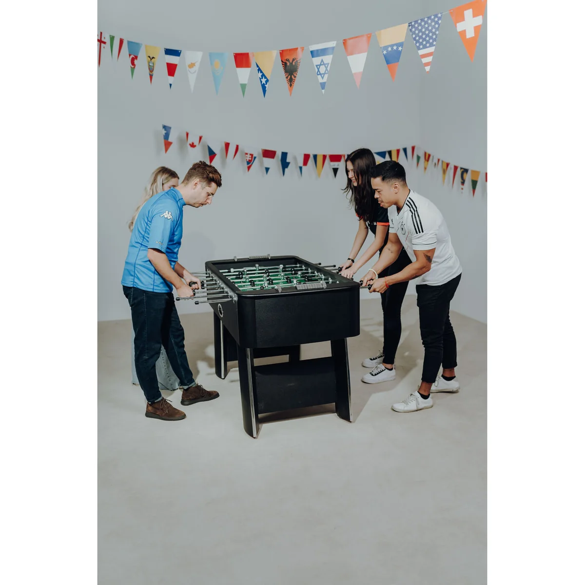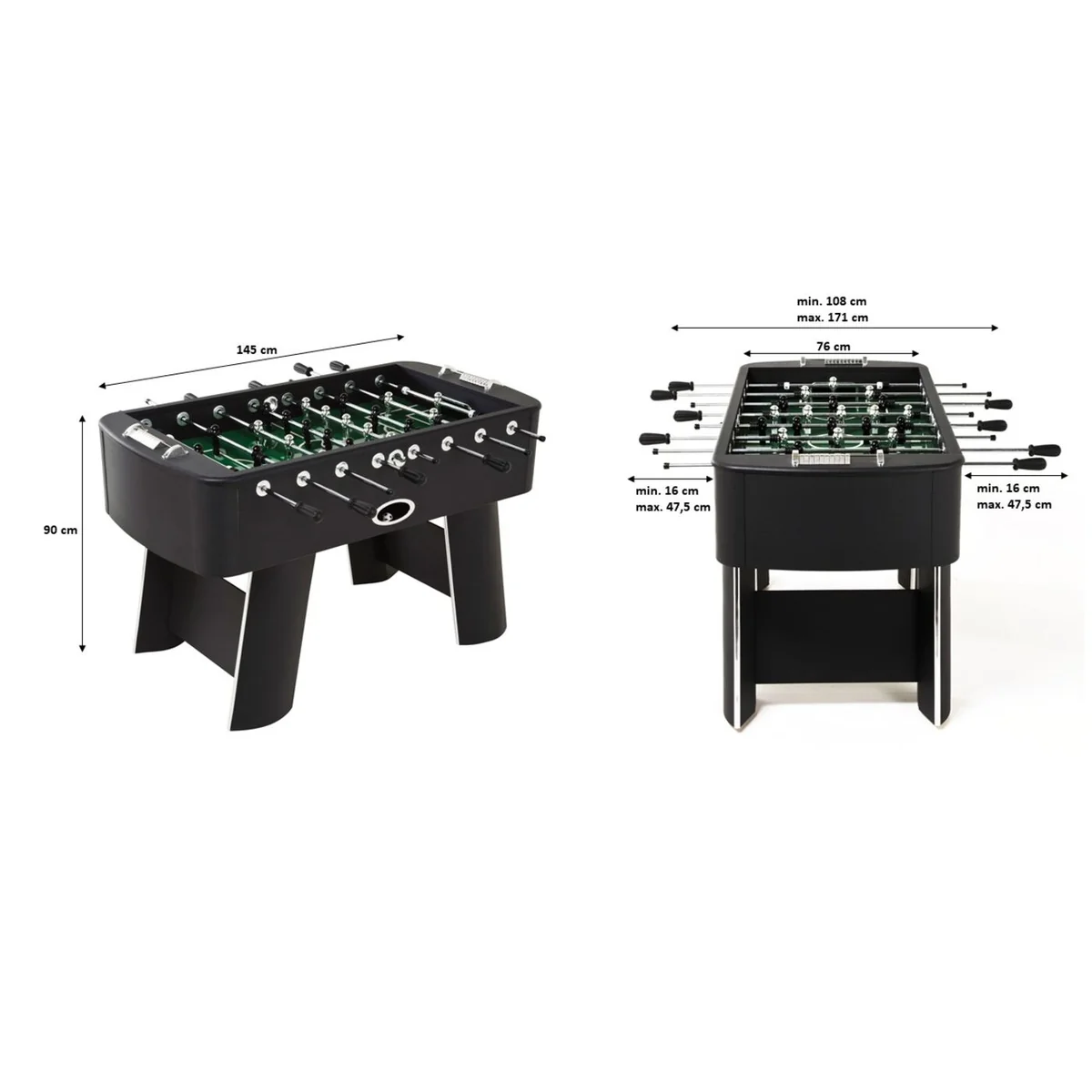Experience the enjoyment of a friendly game right in your own living room. This table is perfect for social gatherings or just a relaxed evening at home. Its elegant black steel finish complements any contemporary decor while providing hours of entertainment.