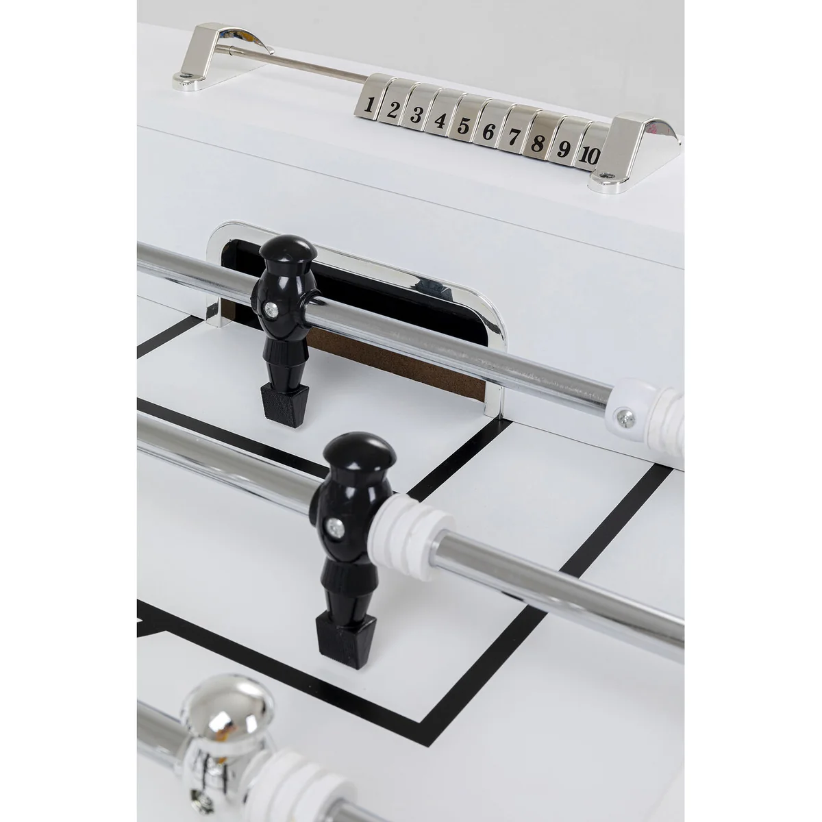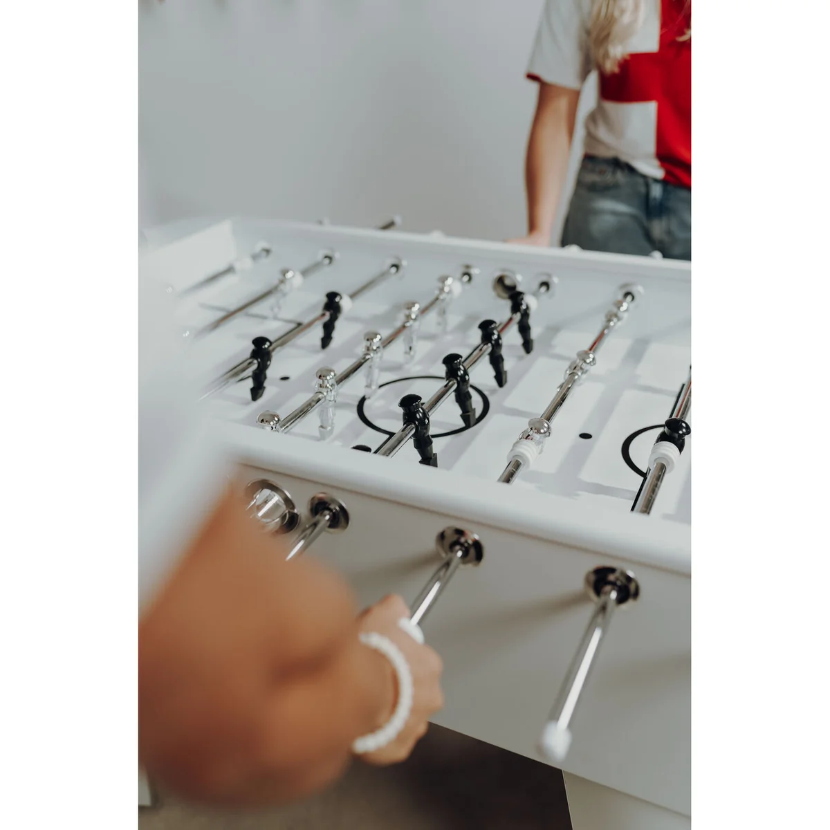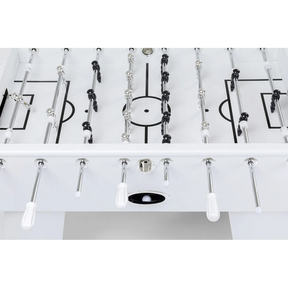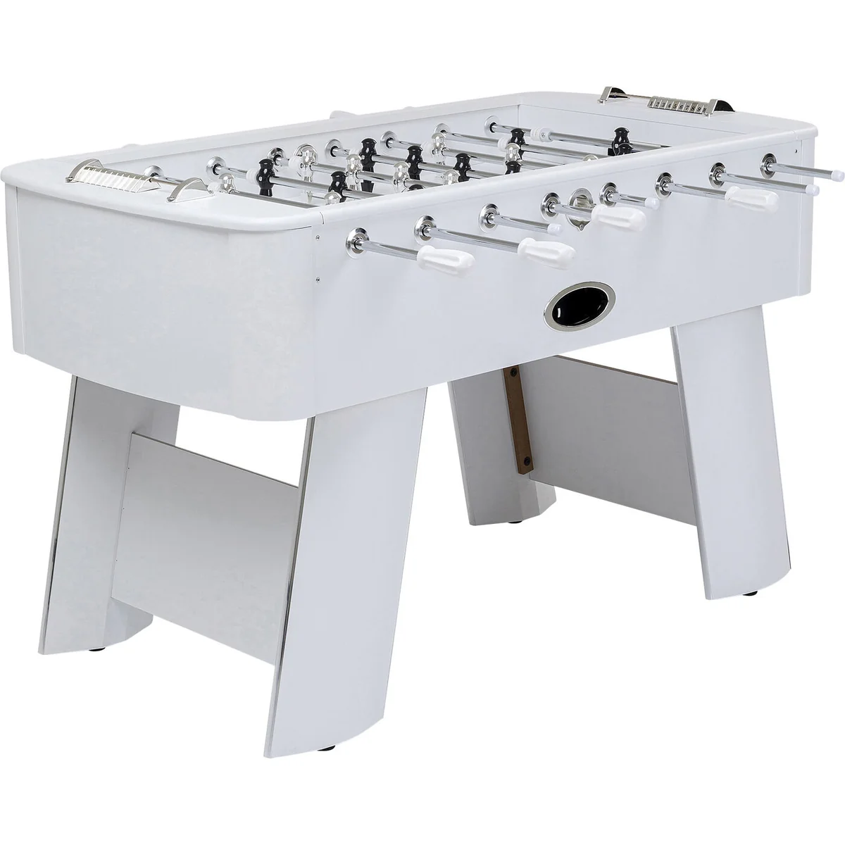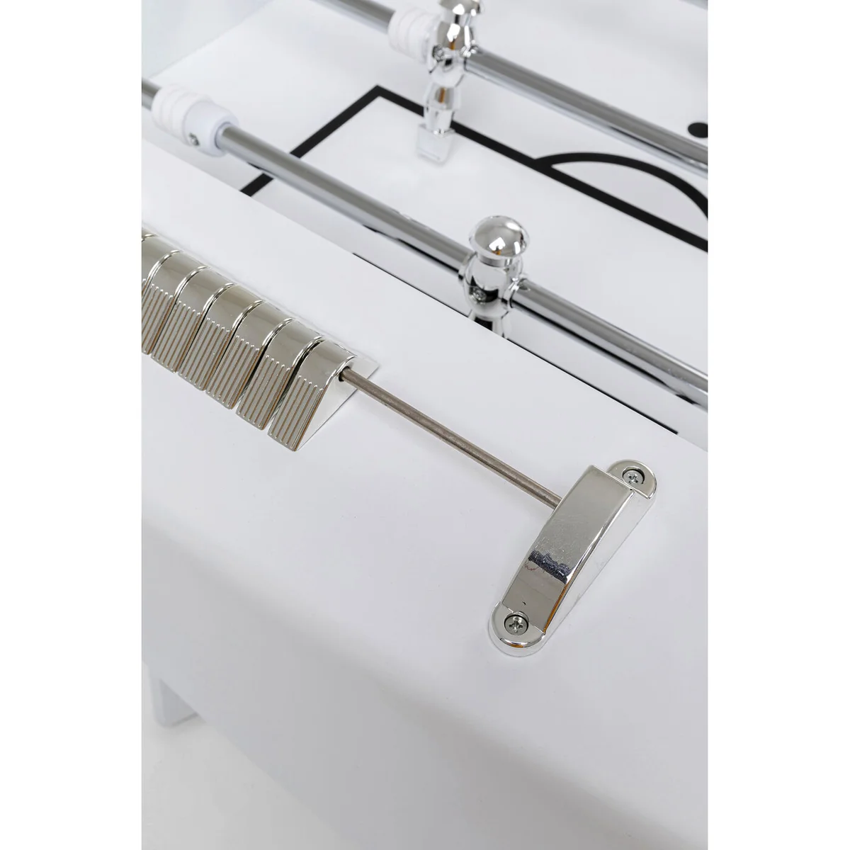 Experience the thrill of a real soccer match right at your home with our White Steel Chromed Foosball Soccer Table. This table is a perfect blend of fun and sophistication.